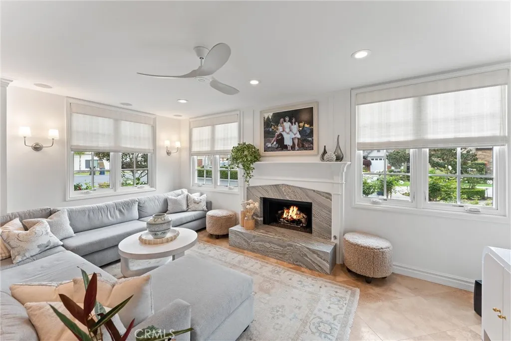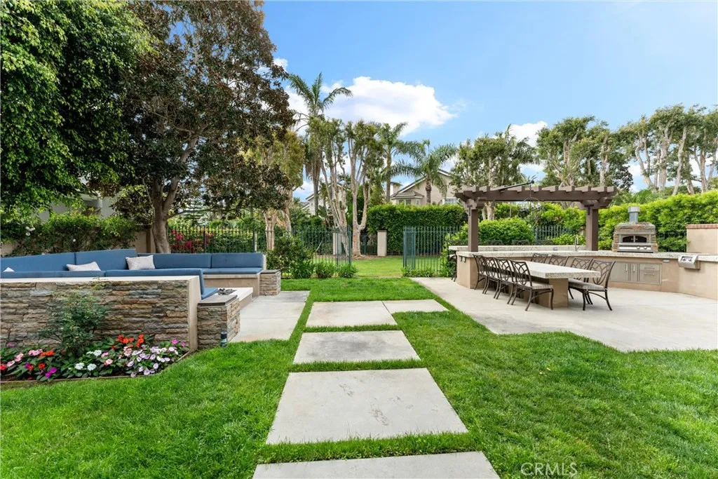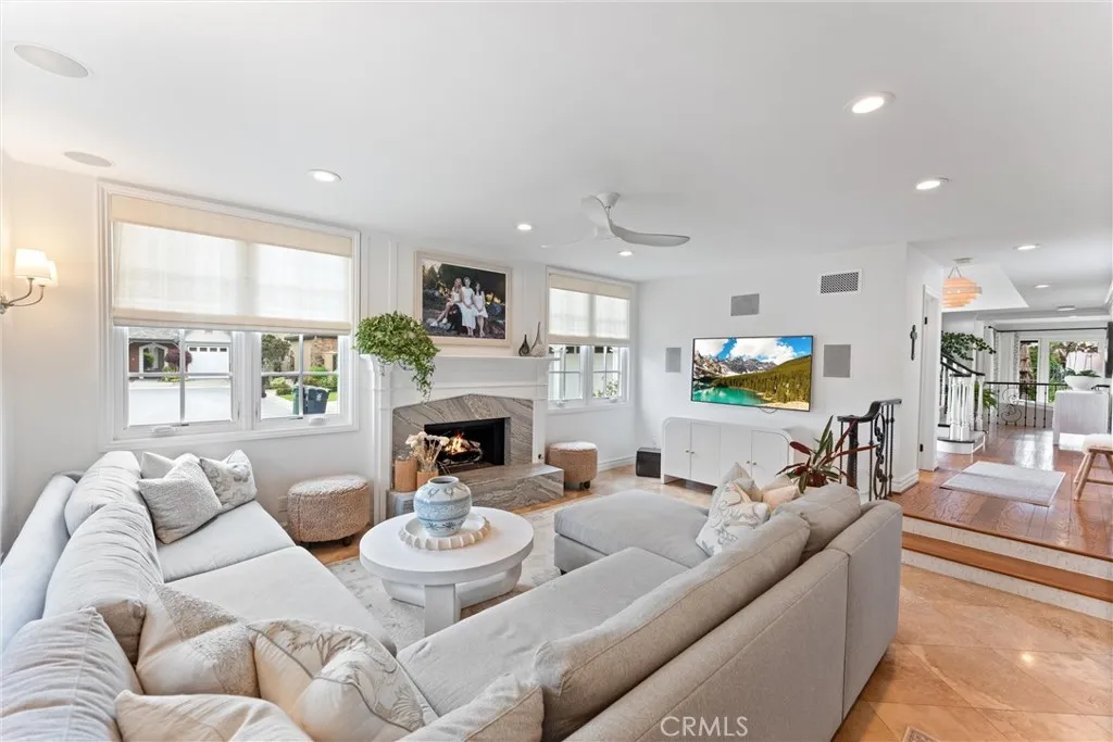 Located in the prestigious guard-gated community of Seacliff on the Greens in Huntington Beach, this exceptional residence with almost 4,000 sq ft offers the perfect blend of luxury, comfort, and coastal living. Situated on a desirable corner lot of over 7,000 sq ft, the home features 4 bedrooms, 3.5 bathrooms, a dedicated office, and a spacious 3-car garage. Designed for both everyday living and entertaining, the resort-style backyard opens to a lush greenbelt and is truly one-of-a-kind—complete with a built-in BBQ, burner, outdoor pizza oven, refrigerator, bar with dining area, expansive fire pit with built-in coolers, and a tranquil water fountain. The chef’s kitchen has been impeccably remodeled with granite countertops, a 48” Wolf range, built-in Sub-Zero refrigerator, dual dishwashers, and a charming bay window that fills the space with natural light. Throughout the home, you’ll find rich wood flooring, plantation shutters, custom drapery, designer pendant lighting and chandeliers, and a stunning double-door entry leading to a grand foyer with a statement staircase. Multiple fireplaces enhance the living room, family room, and primary suite, while French doors create seamless indoor-outdoor flow to the backyard and a serene central patio with a water feature. The sunken family room is an entertainer’s dream with surround sound and a built-in bar. Upstairs, a massive bonus room showcases a custom mural of the Huntington Beach Pier, offering the perfect space for recreation or relaxation. A rare opportunity to own a beautifully upgraded home in one of Huntington Beach’s most sought-after communities, just moments from world-class beaches, golf, shopping, dining and top-rated schools.