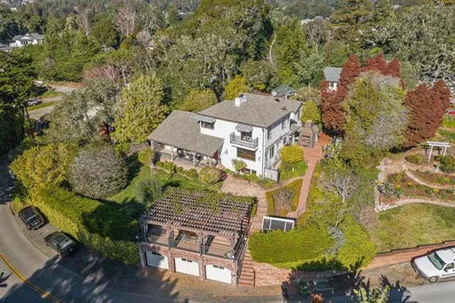 Tuscan-inspired villa with incredible OCEAN VIEWS on a private 11,543± sf lot. Built in 1950, 4 bed, 2.5 bath home offers old-world charm with modern upgrades. Plus, a detached, additional 301sf, rear yard ADU/guesthouse with full kitchen, bath. Enjoy colorful sunsets from inside and from the arbor-covered patio. Features include exposed beam vaulted ceilings, 2 fireplaces (living room & lower family rm, 3-car garage, outdoor brick BBQ, Venetian plaster walls in primary and hall. Large lower family rm /wine cellar/craft room. Kitchen features Viking 6-burner gas stove with dual fuel electric oven, 36 Sub-Zero built-in refrigerator/freezer, Viking dishwasher, 2 sinks, Travertine marble. Improvements include window retrofit (2022/2023), whole house water filter, reverse osmosis system (2022), Sewer, plumbing, forced air furnace with A/C, owned solar panels with Tesla battery backup, and 3 new garage doors with lifts and more! Grounds feature fig, lemon, cherry, apricot, and peach trees, several patios and a rare Vintage cable car from Shadowbrook's Hillivator! Close to Seascape Golf Club, tennis, beach, and Nisene Marks trails. This one you must see! A million dollar ocean view, plus an ADU! You'll find yourself relaxed and lingering a long time. This is the one to buy!