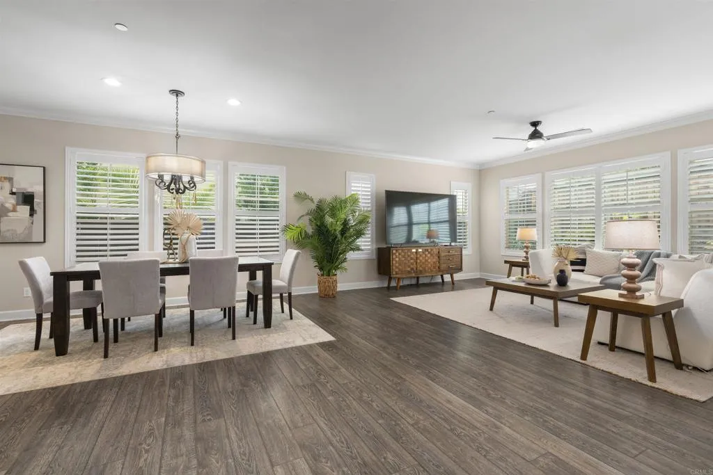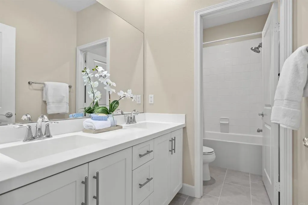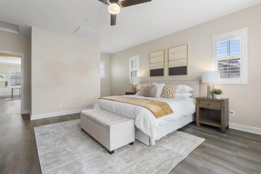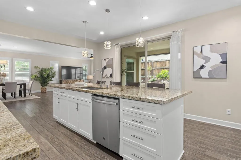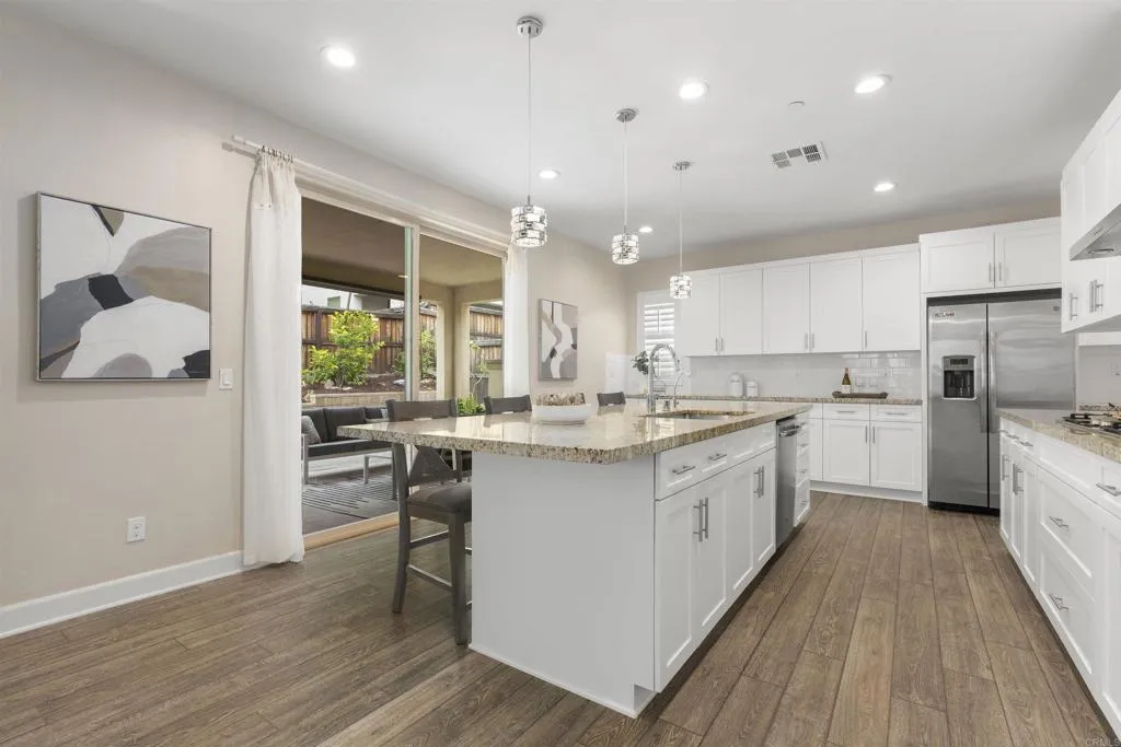 Discover modern living at its finest in the sought-after Escaya Community. Solar is paid-off! This well-cared-for home welcomes you with an inviting foyer that leads into a bright, open-concept layout designed for both comfortable daily living and effortless entertaining. The interior showcases a sleek, carpet-free design for a clean and low-maintenance lifestyle. The upgraded kitchen opens naturally to the living and dining spaces, enhancing the home’s airy and connected feel. A bedroom on the main level provides added flexibility for guests or extended family, while upstairs offers a versatile open office space ideal for remote work or study. Enjoy all that Escaya has to offer, including resort-style amenities such as a community pool, clubhouse, parks, playgrounds, scenic walking trails, and a vibrant neighborhood atmosphere that makes this community one of Chula Vista’s most desirable places to live.