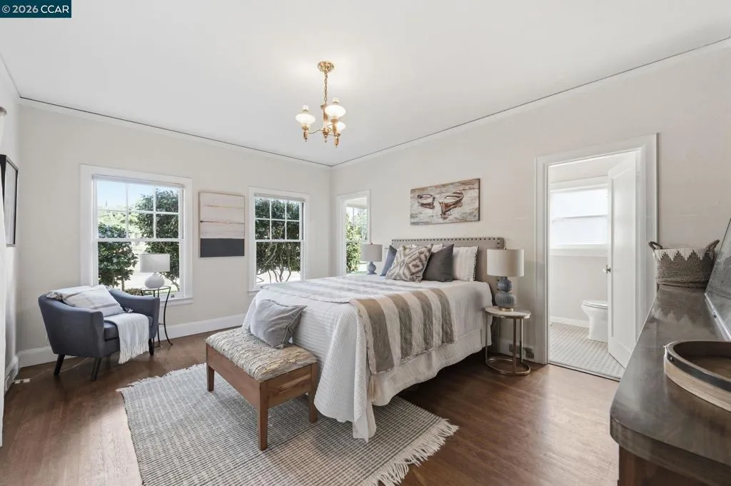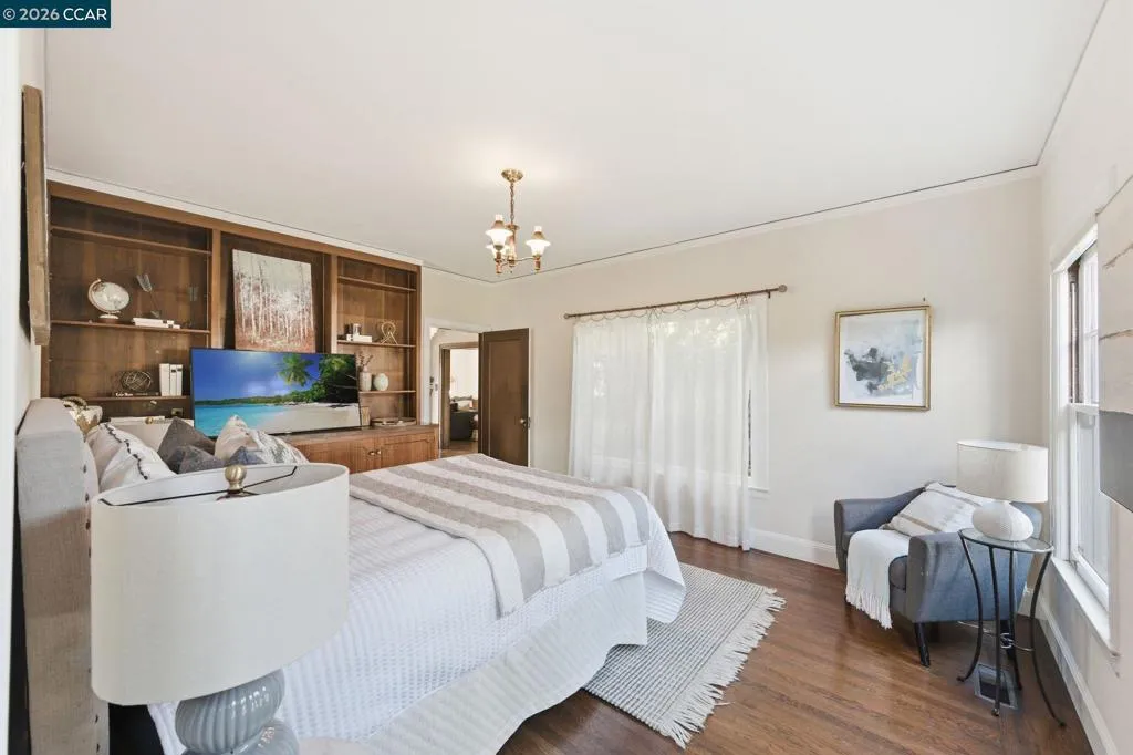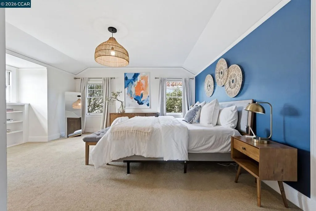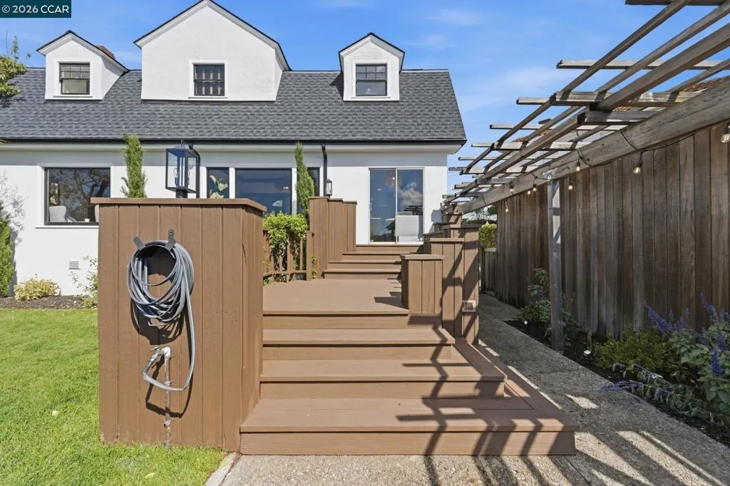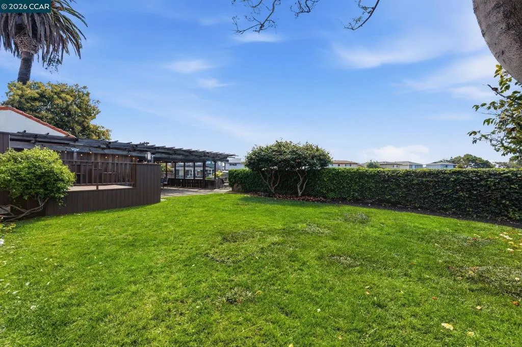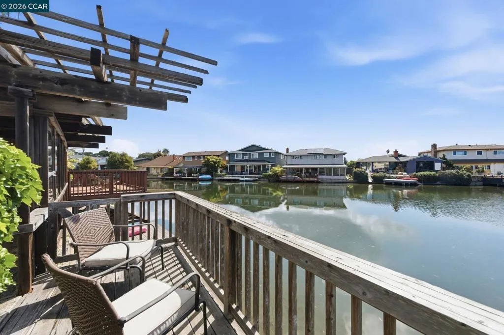 A rare offering along the lagoon in Alameda’s coveted Gold Coast, this elegant Tudor Revival–inspired residence on sought-after Palmera Court presents a compelling blend of timeless architecture, generous scale, and exceptional waterfront living. Set on an expansive 11,700± sq ft parcel, the property unfolds into a private retreat where level lawns, mature landscaping, and thoughtfully designed outdoor spaces create a setting of both beauty and ease. At the water’s edge, a covered pergola with integrated lighting serves as a refined open-air pavilion ideal for year-round dining and entertaining, while the adjacent deck offers a tranquil vantage point to take in the serene lagoon views. The grounds provide a rare combination of usable space and direct water access, delivering an effortless indoor-outdoor lifestyle that is both relaxed and sophisticated. Inside, approximately 2,465 sq ft of well-composed living space features 4 bedrooms and 3 baths, with a flexible two-story layout including the option for a main-level bedroom or office. Original hardwood floors, classic detailing, and abundant natural light enhance the home’s warm yet understated elegance. The living room is anchored by a traditional fireplace and framed by picture windows, while the kitchen and dining areas connect seamlessly to the rear grounds, reinforcing the home’s connection to its exceptional setting. Upstairs, well-proportioned bedrooms offer comfort, privacy, and versatility, supported by a thoughtful layout designed for everyday living and quiet retreat. Additional features include a detached garage, extended driveway, and ample off-street parking. A substantial basement with comfortable clearance provides excellent storage and offers potential for future use. Positioned on a welcoming court known for its strong sense of community, and just moments from top-rated schools, shoreline paths, Alameda Beach, and convenient SF Ferry access, this is a rare opportunity to own a distinguished residence in one of Alameda’s most desirable and tightly held waterfront enclaves.