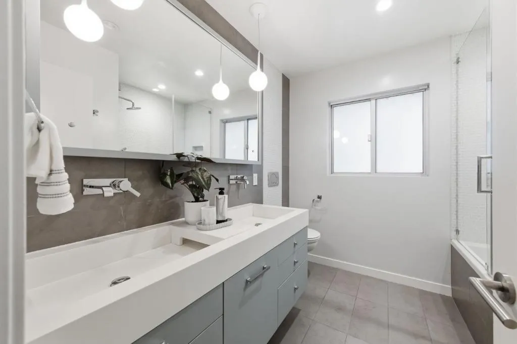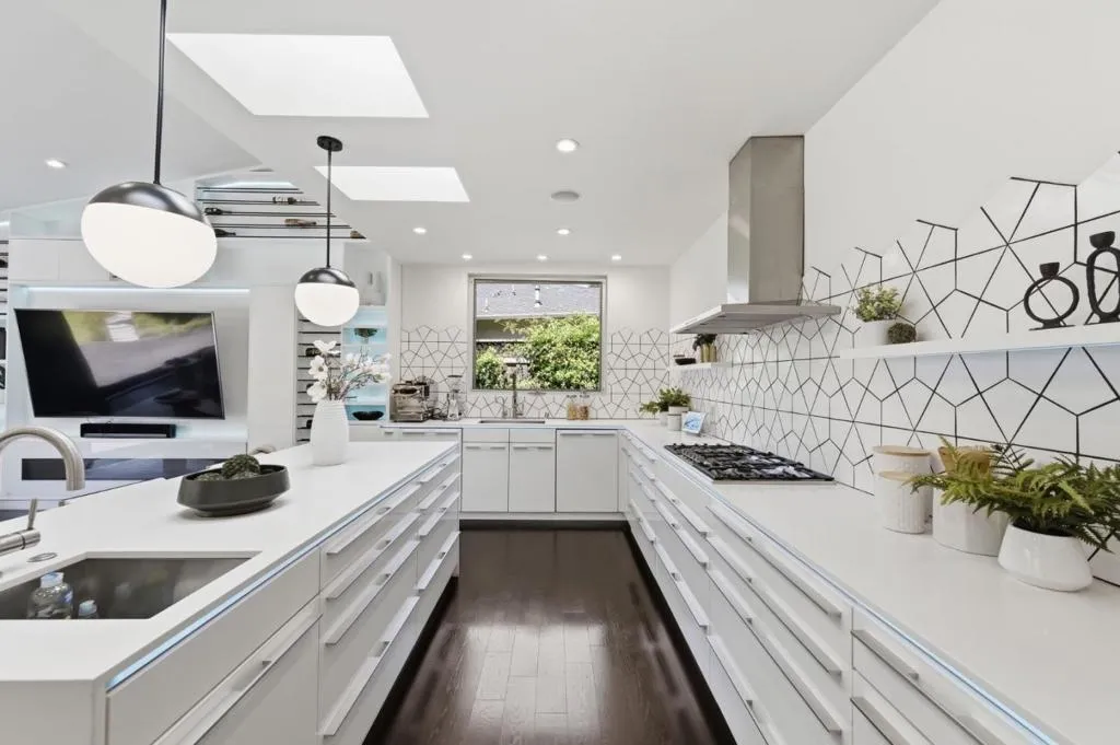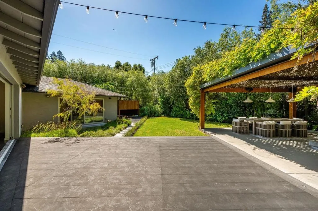 This exceptional Crescent Park home, blocks away from DownTown, pairs striking contemporary architecture with visually sophisticated, livable interiors. A glazed foyer and vivid front door, introducing lofty, light-filled spaces, leading to a spacious mudroom and a library-lined hall. The main office offers high ceilings, large window facing sculptural front yard & Murphy bed for guests. The great room boasts a fireplace wall w/ custom display niches, centers on a built-in media and wine display wall and opens through expansive retracting glass doors to the backyard. The sleek kitchen offers multiple skylights, custom cabinetry, oversized island & top of the line appliances. Beautiful dark hardwood floor throughout. Additional office off of the great rm. The spacious primary suite w/ sliding doors leads to the backyard. Spa-like bath with dual vanity, mosaic detailing, skylit ceiling & oversized glass shower w/ side jets. Three additional bedrms are each distinct and expressive, two baths finished with a designers eye for material. Fully outfitted gym, large laundry rm. Outside, the stunning pergola features a fire pit, built-in cement seatings w/ suspended lighting. In-ground lighting traces the deck. The backyard features wooden spa structure, kids playhouse and a trampoline.