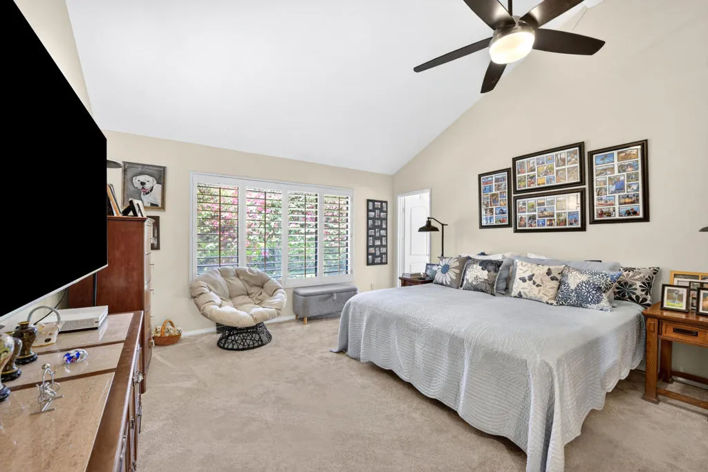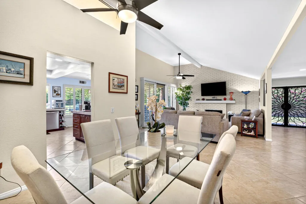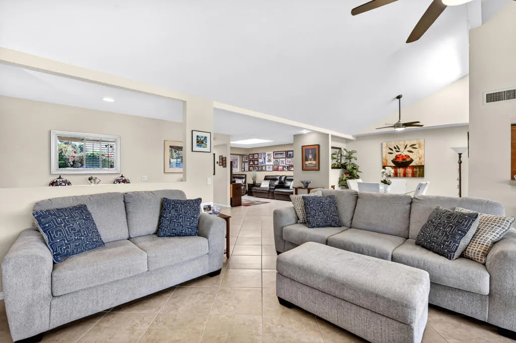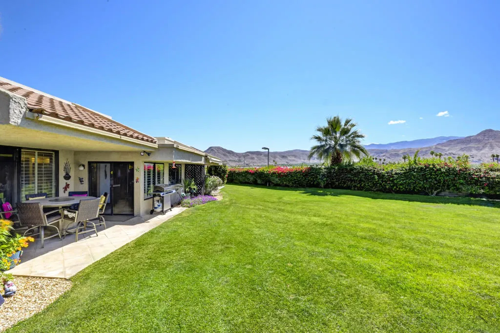 Experience refined desert living in this beautifully maintained residence located within the highly desirable Cathedral Canyon Country Club. Offering 2 bedrooms plus a versatile den, 2 bathrooms, and 1,918 square feet of thoughtfully designed living space, this home is ideally positioned with southwestern exposure capturing unobstructed views of the San Jacinto Mountains--creating the perfect backdrop for true desert living. Step inside to a light-filled interior where soaring vaulted ceilings and an open-concept layout create a warm and inviting atmosphere. The spacious living area centers around a charming fireplace and flows seamlessly into the dining space--ideal for both everyday living and effortless entertaining. Large windows and sliding glass doors frame picturesque outdoor views while bringing in an abundance of natural light. The kitchen is well-appointed with ample cabinetry, generous counter space, and a convenient layout that opens to the main living areas. Just beyond, a cozy breakfast nook and direct access to the patio enhance the home's indoor-outdoor lifestyle. The expansive primary suite offers a private retreat, complete with dual vanities, a soaking tub, and a separate shower. A well-separated guest bedroom and bath provide comfort and privacy for visitors, complemented by the newly renovated guest bathroom. The den offers flexibility for a home office, media room, or additional guest space. Step outside to a covered patio where the southwestern orientation truly shines, overlooking lush greenbelt and showcasing breathtaking, unobstructed mountain views--perfect for morning coffee, golden hour gatherings, or relaxing under the desert sky. The serene setting provides both privacy and a true sense of tranquility. Additional highlights include a spacious laundry area, ample storage, and an attached 2-car garage. The HOA of $691/month covers the roof, building exterior, landscaping, cable, and internet--offering convenience and peace of mind. The property is situated on leased land with a land lease of $169/month, secured through 2061. Located within the gated Cathedral Canyon Country Club, residents enjoy access to golf, tennis, pools, and a vibrant desert lifestyle just minutes from shopping, dining, and entertainment.