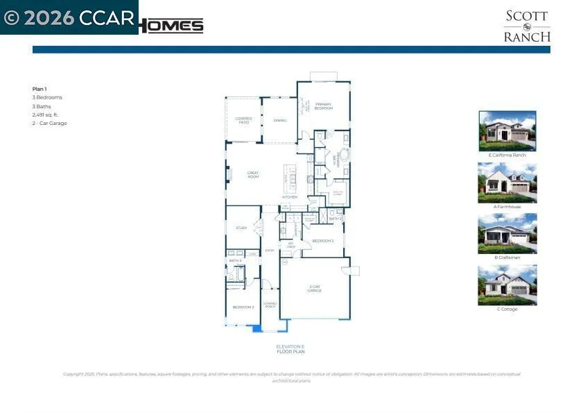 Introducing Scott Ranch by Davidon Homes, an exciting new home community nestled among the rolling hillsides of Petaluma’s tranquil west side. This innovatively designed single-story home features three bedrooms, three full baths, great room with electric fireplace, professionally appointed kitchen with stainless steel appliances, and study in approx. 2,491 sf. The elegant primary suite includes sliding glass doors, optional romantic gas fireplace, expansive walk-in closet and spa-like bath with dual vanities, glass enclosed shower and free-standing soaking tub. A study can serve as a home office or be converted to a fourth bedroom. Buyers who act quickly will have the opportunity to select from a curated collection of upgrades and options to personalize their new Scott Ranch home.