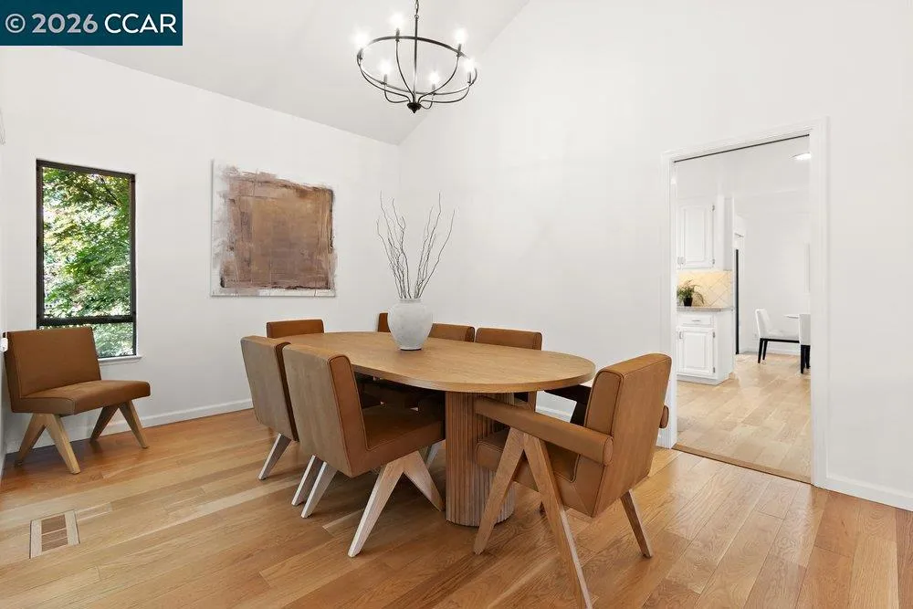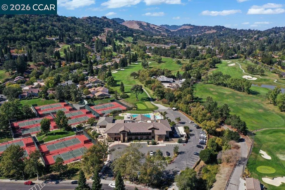 Beautifully updated and expanded Inverness model, ideally perched above the 5th tee box in the popular Moraga Country Club. This rare court location offers a private cul-de-sac setting with sweeping green golf course views. The 2,273± sq. ft. floor plan features formal living, dining, and family rooms—a rare combination in MCC—along with two cozy fireplaces. Recent upgrades include tastefully remodeled primary and hall baths, new hardwood floors in the living room, custom blinds, and more. A standout feature is the sunroom, showcasing walls of glass and soaring skylights—perfect as a guest bedroom, office, gym, or playroom. Outdoor spaces shine with flowering trees, lush landscaping, and low-maintenance Trex-style decking—ideal for entertaining or enjoying MCC’s Fourth of July fireworks. Ownership includes full Moraga Country Club membership, offering an 18-hole championship golf course, grass driving range, pickleball and tennis courts, Olympic-sized pool, updated fitness center, clubhouse dining, bars, and the new Courtside Grille. Live the MCC lifestyle. Open 4/18 and 4/19. Tell a friend!