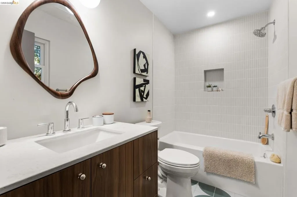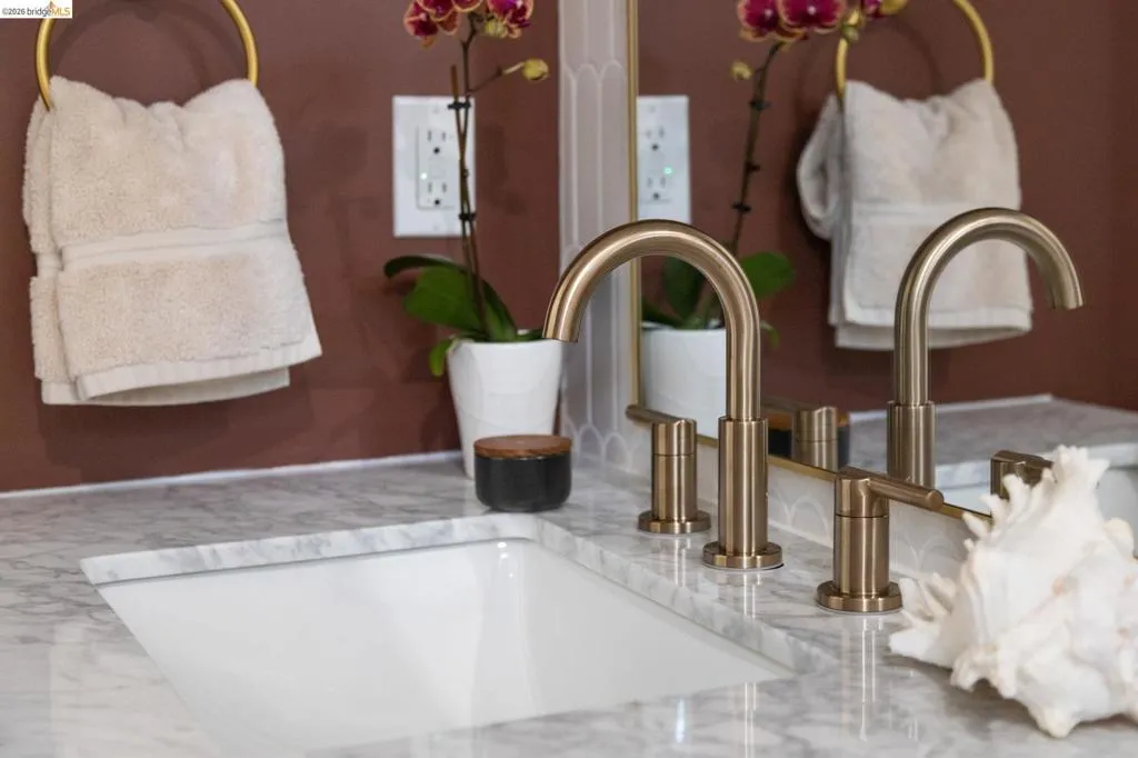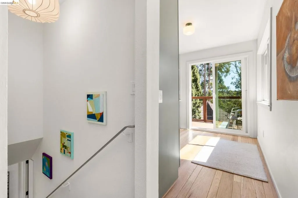 Beautifully updated 3BD/2.5BA home offering modern design and seamless indoor-outdoor living in a convenient, verdant setting. Level-in access from street and garage with interior entry. The open main level features a cheerful living/dining area with tiled fireplace, and a convenient half bath. The fully remodeled contemporary kitchen opens to a sweet deck—perfect for al fresco dining or morning coffee. Upstairs includes a spacious primary suite with a sleek modern bath, walk-in shower, and custom walnut vanity, plus a second bedroom and updated hall bath with geometric tile. The lower level offers a versatile third bedroom with deck access and a generous family room with sliding doors to another deck—ideal for relaxing and entertaining. Close to East Bay Regional Parks with trails and bike paths, Montclair Village amenities, commute options, The Hills Swim and Tennis Club. A wonderful blend of style, comfort, and convenience!