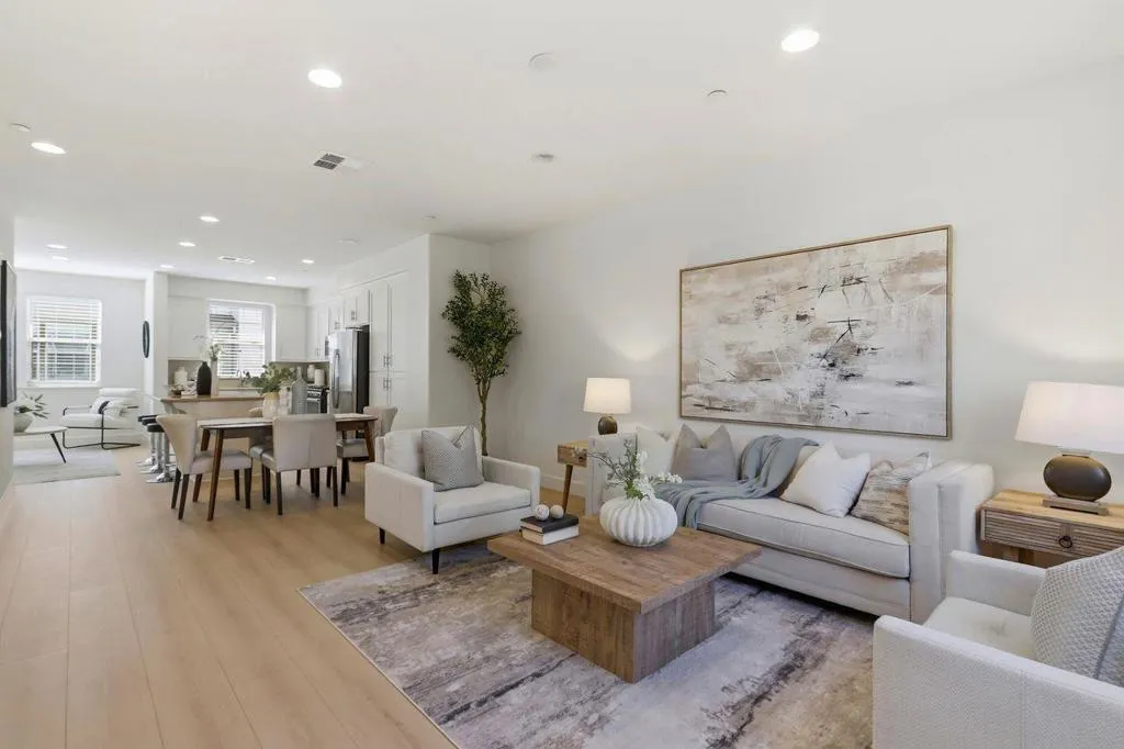 Welcome to comfort and elegance! This home offers approximately 1,730-square feet of living space with three bedrooms and three and a half baths! One bedroom with en-suite bath is located on the ground floor, while level 2 offers an open floor plan boasting a living room with balcony access, a dining area, a half bath and a kitchen with granite counters, a large island and stainless-steel appliances, including a gas cooktop. On the third floor sits the primary bedroom and junior suite. This home also has indoor laundry, central A/C and a two-car garage. Complex has a swimming pool and is next to Central Park. Easy access to the Apple Campus, shopping, schools and Kaiser.