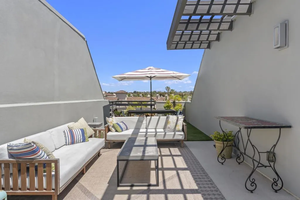 Modern Coastal Living in Carlsbad. Set within the heart of Carlsbad Village, this three-bedroom residence brings together clean design, functional living, and a coastal setting that speaks for itself. The main living level is open and efficient, with a seamless flow between kitchen, dining, and living spaces. Recently upgraded throughout, the interiors feature new flooring across the home, complemented by thoughtfully redesigned stairs with a custom tile inset. The kitchen has been fully reimagined with all-new cabinetry, updated backsplash, and modern lighting, creating a clean and elevated focal point. A private balcony extends the space outward, offering a natural pause point off the main level. Above, a private rooftop deck creates an additional layer of living—suited for quiet mornings, small gatherings, or simply taking in the coastal air. Designed for ease, the home also includes a fully finished garage with upgraded flooring, in-unit laundry, and fully paid solar, supporting both everyday functionality and long-term efficiency. Positioned just moments from the shops, restaurants, and coastline of Carlsbad Village, this is a more considered approach to low-maintenance coastal living.