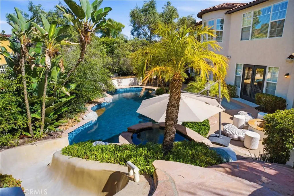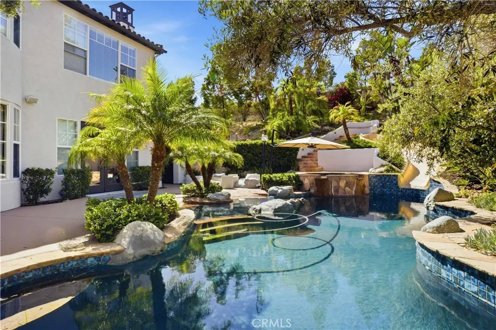 Stunning updated Spanish-style home in the highly desirable Amador neighborhood of Ashley Falls. Features include soaring 25-ft ceilings, wide-plank white oak flooring, formal living and dining rooms, private office, and a curved staircase with custom iron railings. Spacious family/game room opens to a chef’s kitchen with Viking range, quartz countertops, designer backsplash, refreshed cabinetry, and butler’s pantry. Upstairs offers 3 ensuite bedrooms, loft/media area, and a luxurious primary suite with fireplace, sitting area, custom closet, and spa-like bath with freestanding tub and walk-in shower. Resort-style backyard with lush landscaping, fruit trees, heated lagoon pool with rock slide, spa, outdoor shower, and Sonos sound system. Additional features include gated driveway, 3-car garage, Tesla charger, and security system. Prime location near Torrey Pines High School, Canyon Crest Academy, and premier shopping/dining at Del Mar Highlands, One Paseo, and Pacific Highlands Ranch.