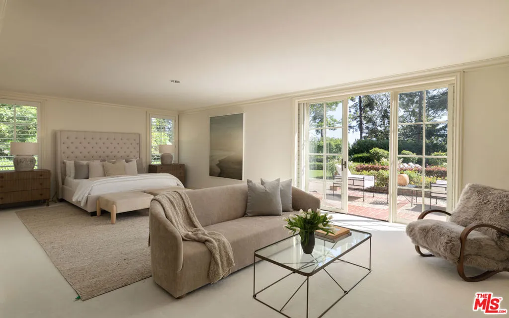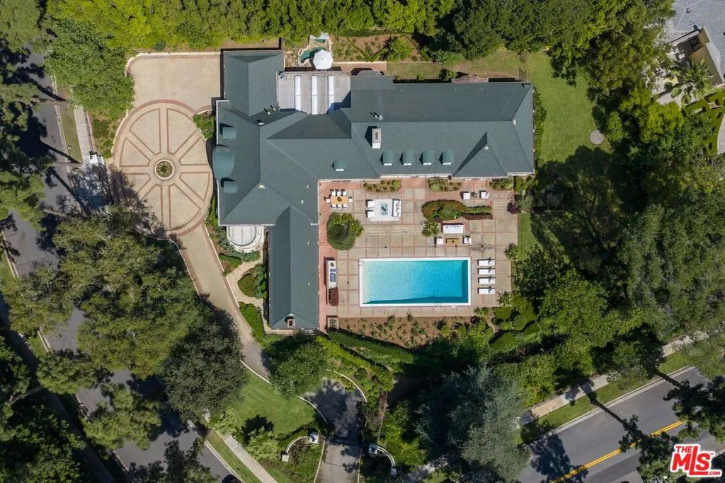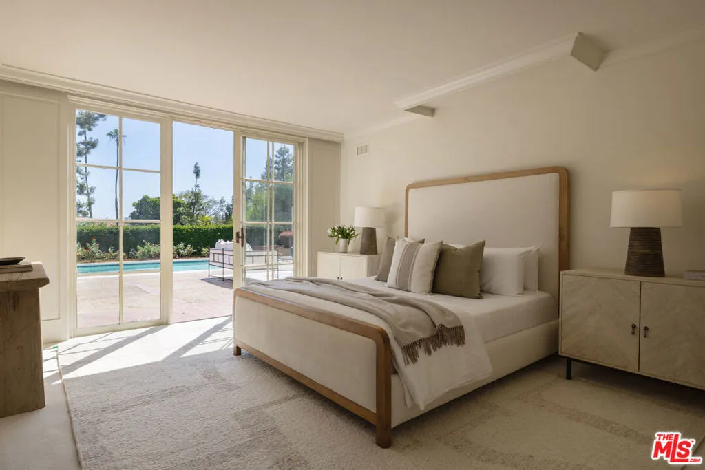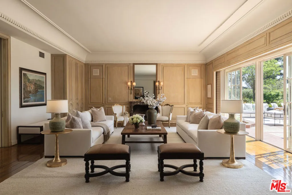 First time available in 50+ years, exceptional estate one block from Beverly Hills Hotel. Sited on 37,766 sq ft corner lot, this Regency Gem offers soaring high ceilings and is spectacular in scale. Excellent for entertaining, all public rooms open to the gardens beyond. A wood paneled library and sun lit den compliment the grand living room. Primary suite offers sitting area, two large walk-in closets and marble bath. Two additional guest bedrooms with baths en-suite and two staff bedrooms complete this rare offering. Gated motor court with ample off-street parking, vast lawns and sun-drenched pool area. Ready for the next chapter, this estate is one of the finest locations in Beverly Hills. Shown only to prequalified buyers.
