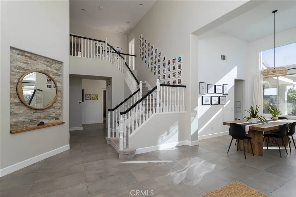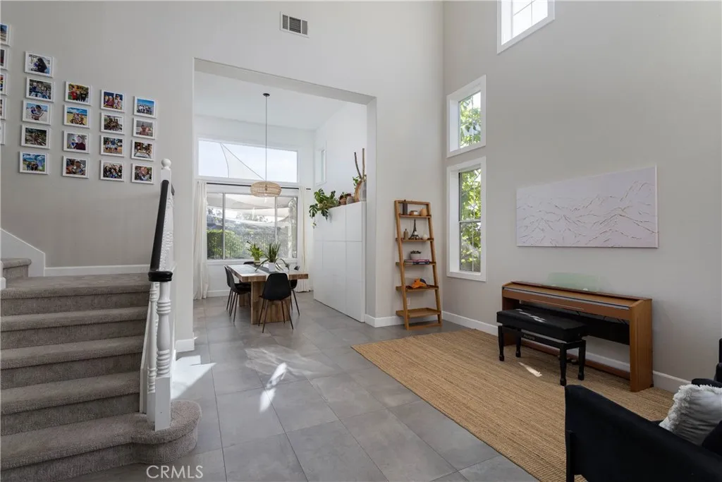 Panoramic views, abundant natural light, and beautifully updated interiors define this 5-bedroom, 3-bath Robinson Ranch home in the sought-after Lyon Highlands tract. With approximately 2,657 square feet, soaring ceilings and expansive windows fill the home with light, creating an open and inviting feel throughout. The flexible floor plan includes a highly desirable main-floor bedroom and full bath—ideal for guests, extended family, or a private home office. The remodeled kitchen opens seamlessly to the family room and features a large center island, updated cabinetry, subway tile, generous storage, and picturesque views that elevate everyday living. Upstairs, the spacious primary suite offers a true retreat, complete with a dedicated dressing area and walk-in closet. The fully renovated bathroom has been thoughtfully redesigned with a large frameless glass shower, custom vanity, and built-in storage, creating a clean, modern aesthetic. Secondary bedrooms are well-sized, and additional bathrooms have been tastefully updated. Additional upgrades include: HVAC system, whole house cooling fan, whole house water filtration system, and soft water system—enhancing comfort and efficiency throughout the home. A separate, newly remodeled laundry room and direct access to the 3-car garage with built-in cabinetry provide added functionality and storage. The backyard is designed for both relaxation and entertaining, with multiple seating areas, turf, fruit trees, a covered patio, outdoor speakers, and sweeping forever views—perfect for enjoying Southern California indoor-outdoor living. Located in the established Robinson Ranch community, residents enjoy access to neighborhood parks, an Olympic-sized gated pool and spa, sport courts, and tot lots, along with nearby hiking and biking trails including Bell View Trail. Zoned for Robinson Elementary and part of a well-regarded school district, with low HOA and no Mello Roos, this home offers an exceptional combination of lifestyle, location, and long-term value.