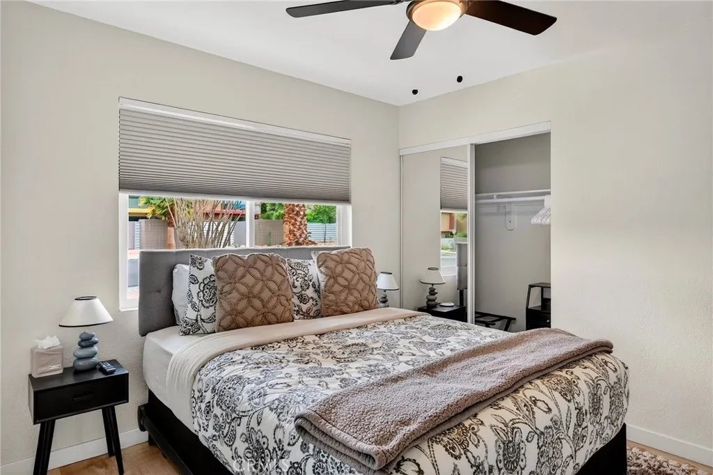 Welcome to this stunning 3 bedroom, 2 bath modern retreat, ideally situated on a tranquil street in the highly sought-after historic Racquet Club community of Palm Springs. Thoughtfully renovated and completely reimagined, this home blends contemporary style with effortless desert living. No detail has been overlooked. The resort-style backyard is an entertainer’s dream, featuring a PebbleTec saltwater pool and spa, ambient outdoor lighting, drought tolerant landscaping, upgraded irrigation, a bocce ball court, fire pit, and a fully equipped barbecue area all enclosed by sleek aluminum fencing for added privacy. Inside, the home showcases engineered flooring, dual-pane windows, and a beautifully redesigned kitchen with new cabinetry, modern appliances, and striking Caesarstone quartz countertops. Smart home features, including Ring cameras and remote system controls, provide convenience and peace of mind. The expansive side yard offers rare flexibility, with space for RV or boat parking. Additional upgrades include a new 200-amp main electrical panel and a dedicated 240V/50-amp outlet for a Wallbox EV charger. Located just minutes from downtown Palm Springs, you’ll enjoy easy access to premier shopping, dining, entertainment, and casinos. This property is also a proven successful short-term rental with future bookings already in place. Also, we have an opportunity for the buyer to take advantage of a 1% interest rate reduction on ANY loan program – VA or Conventional – at ZERO cost to you. Lower monthly payments, no extra fees. Contact me to learn how!