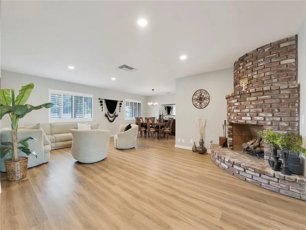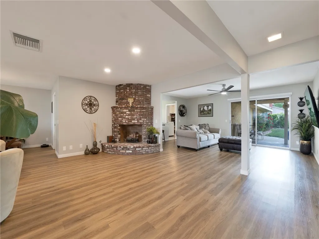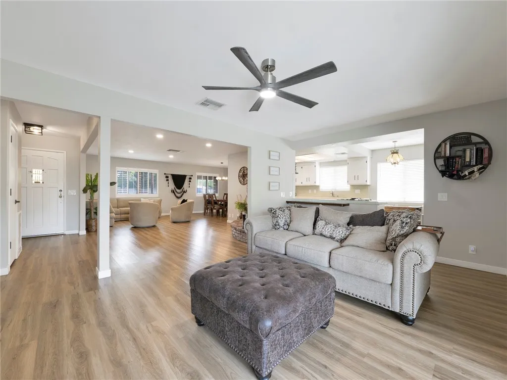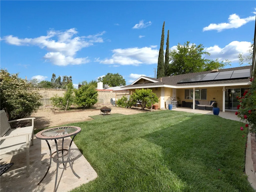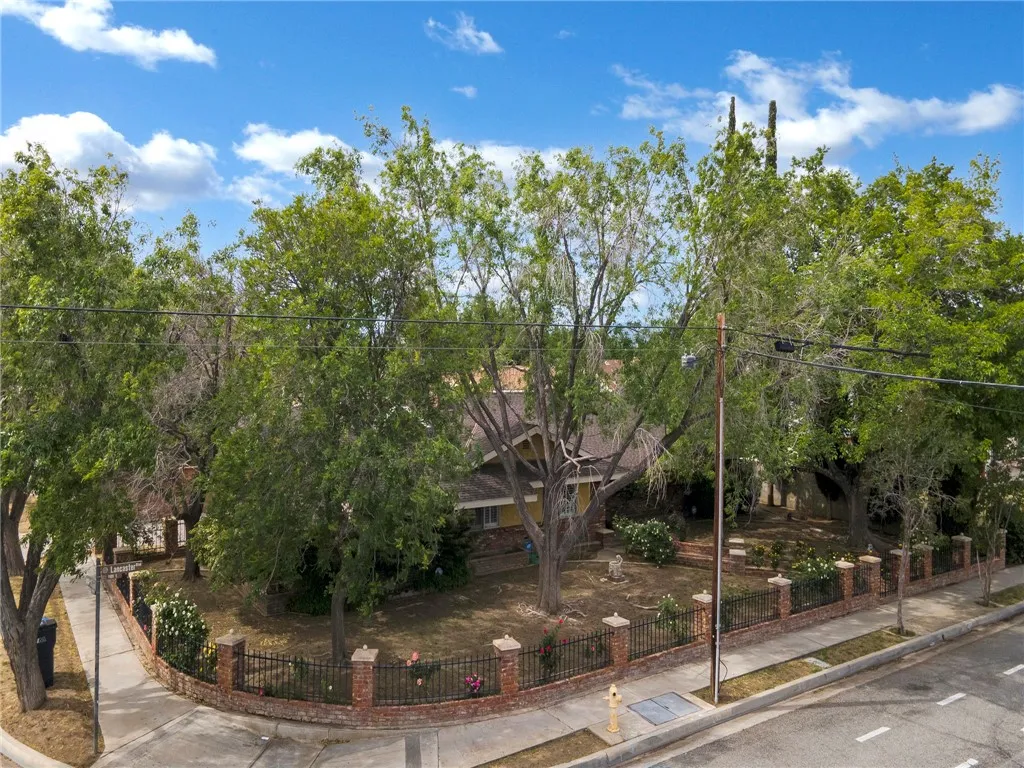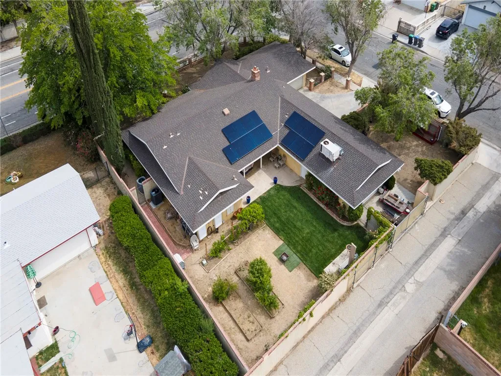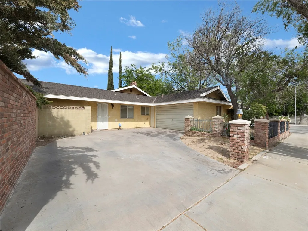 Luxury meets functionality in this beautifully customized Lancaster ranch home, ideally situated on an oversized 1/3-acre corner lot. This single-story residence features 4 spacious bedrooms and 3 well-appointed bathrooms. An enclosed front yard with a lighted pathway creates a warm and inviting first impression. Inside, you'll immediately appreciate the open floor plan and the meticulous upgrades throughout the home. Enjoy a formal living room with fireplace and formal dining area, complemented by vinyl wood flooring and custom paint that add both style and comfort. The dream kitchen is designed for both everyday living and entertaining, complete with a breakfast bar, stainless steel appliances, built-in grill, and a generous walk-in pantry. The spacious master suite features a connecting bathroom with a walk-in shower, tile flooring, and dual vanities. Large guest bedrooms provide ample space for oversized furnishings, while a dedicated home office just off the kitchen is perfect for remote work or a home-based business.This home is equipped with a multi-zone heat pump HVAC system for efficient year-round comfort. Solar panels on roof. 2 garages / 2 rear yards. A unique opportunity awaits with one of the garages being ideal for an ADU conversion, featuring a separate utility meter, its own heating and air conditioning, and a private entrance and side yard. The second yard is a garden-style backyard with lush landscaping, grapevines, and mature pear and peach trees. A covered patio creates the perfect setting for relaxing or entertaining guests. This is truly a must-see home, priced to sell at $514,999.