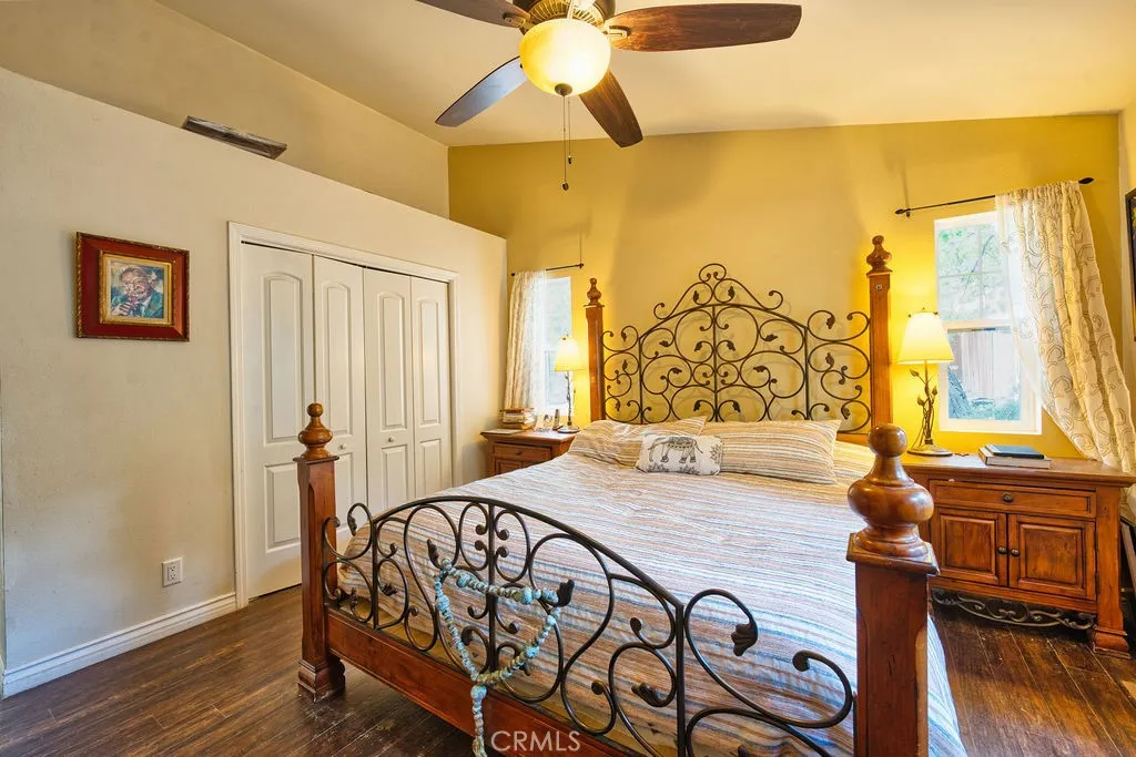Welcome home to this beautifully reimagined retreat, where no detail was overlooked. The open floor plan flows effortlessly beneath soaring vaulted ceilings with recessed lighting, creating a bright, airy atmosphere perfect for everyday living and entertaining. The stunning kitchen features crisp white cabinetry, gleaming granite countertops, and stainless steel appliances — including a gorgeous stainless steel stove. Cozy up in the living room beside the energy-efficient wood-burning stove, or step through elegant French doors onto your private back deck, where serene views and a relaxing hot tub await. New flooring throughout ties every space together with a fresh, polished feel. In addition to the main living spaces, the home offers a versatile fourth (bonus) room that can easily be converted into a home office, guest room, or additional bedroom to suit your needs. Outside, the fully fenced yard offers exceptional privacy — ideal for entertaining, pets, or simply unwinding in your own peaceful oasis. The property also includes ample exterior storage, providing plenty of space for tools, recreational gear, or seasonal items. This property includes a rare second lot, with its own APN, that stretches street to street, already equipped with its own water meter and ready to build. Whether you're looking to develop, invest, or simply enjoy the extra space, this added potential is truly a standout feature. Perfectly situated near a park and library, this move-in ready gem combines comfort, style, and location. Don't miss this one — properties like this don't last!