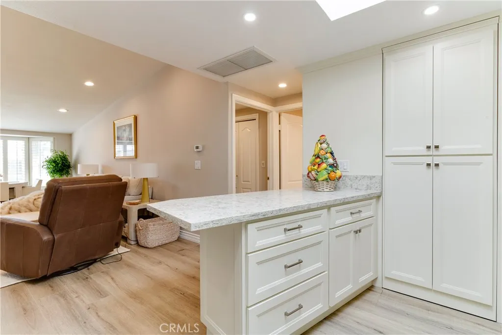 A DREAM COME TRUE! Located in Mutual 12 - one of Leisure World’s most sought-after Mutual’s is this STUNNING CORNER with two master bedrooms and two baths – one with a walk-in closet and the other with two closets! This well thought out remodel gives you everything you need from a beautiful kitchen with white Cabinetry, quartz countertop, backsplash and breakfast bar, stainless steel appliances and sink, large pantry, and an oversized skylight that brings in an abundance of natural light! Designer paint, wood-look floors, bay windows, Plantation Shutters, central heat/air, smooth ceilings, canned lighting, full size washer/dryer combo, and a wonderful patio to enjoy! This home is GORGEOUS – you will definitely want it for your own!!