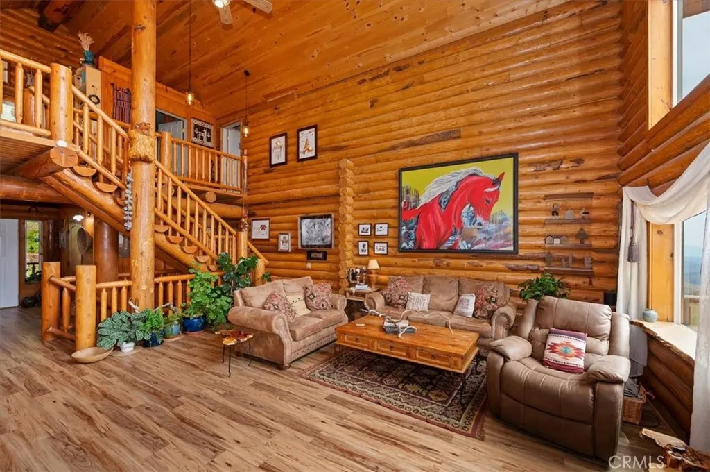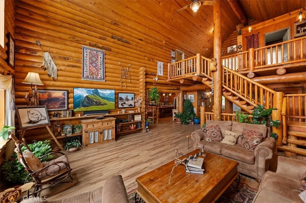 Escape to the mountains in this stunning 3,000 sq ft authentic log cabin, perfectly set on an oversized, forested 1/3-acre lot. Surrounded by towering pines and breathtaking natural beauty, this home delivers the ultimate blend of rustic charm and modern comfort. ~ Step inside to a spectacular great room featuring soaring two-story ceilings and dramatic floor-to-ceiling windows that flood the space with natural light and showcase the serene forest views. The impressive kitchen is designed to gather and entertain, complete with custom cabinetry and upgraded finishes that make every meal feel special. ~ The main-level master suite offers a peaceful retreat, while the lower level is built for fun and relaxation with a spacious game room, guest bedroom, and full bath. Upstairs, you’ll find two additional guest rooms and another full bath—plenty of space for family and friends. ~ Whether you're hosting a full house or enjoying a quiet getaway, this home invites everyone to experience the best of mountain living—endless hiking, bird-watching, wildlife sightings, and the calming beauty of nature right outside your door. ~ All of this on a plowed & maintained road, public utilities and high-speed internet. Room for everyone. Views that inspire. A lifestyle you won’t want to leave.
