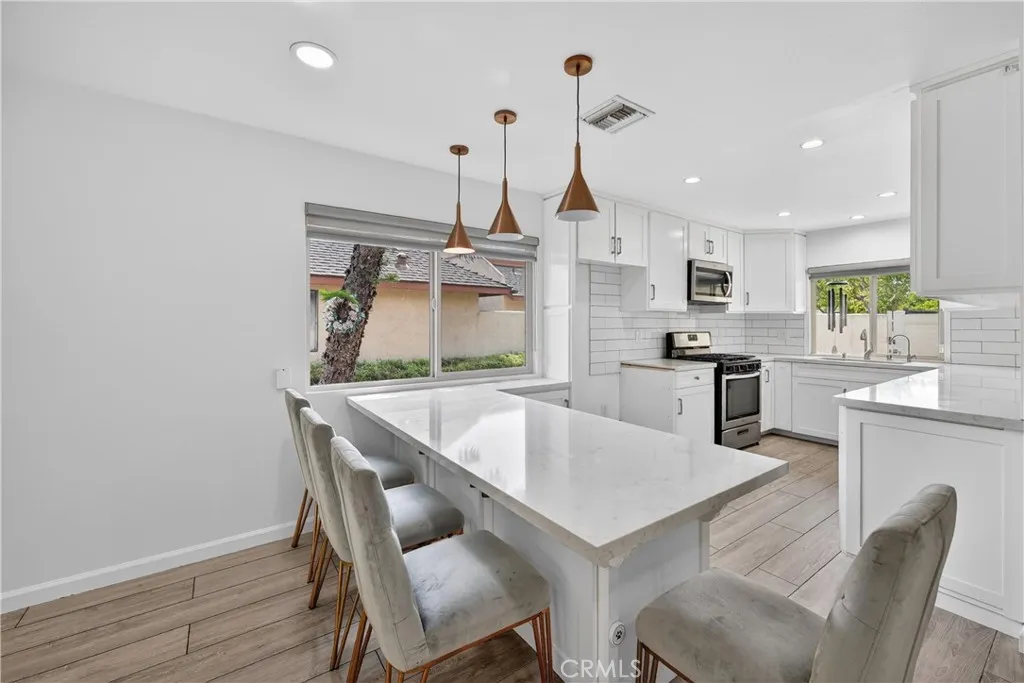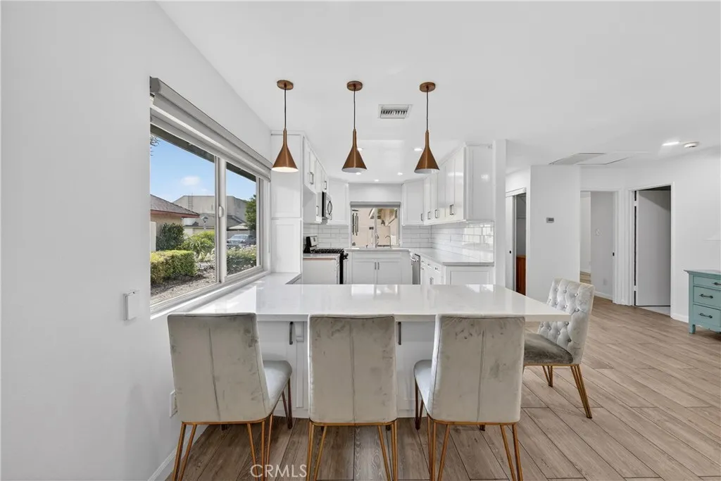 Fully Renovated Private Single-Story home in Heritage Village | Move-In Ready Tucked within one of the most desirable and private locations in Heritage Village, this upgraded single-story corner home offers a rare blend of privacy, functionality, and everyday convenience. A gated courtyard entry leads into a bright, open layout featuring premium flooring, dual-pane windows, and a fully remodeled kitchen with custom cabinetry, granite countertops, stainless steel appliances, and a designer backsplash. The dining area, anchored by a custom white quartz table, flows seamlessly to the backyard—creating effortless indoor-outdoor living. The inviting living room features a cozy fireplace and recessed lighting, while the upgraded bathroom showcases clean, modern finishes. The spacious primary suite is filled with natural light and enhanced by custom closet organization, and the oversized secondary bedroom offers flexibility for guests, a home office, or additional living space. Step outside to a private backyard ideal for relaxing or entertaining—complete with a covered patio, electrical ready for future upgrades, a commercial-grade concrete slab, and a built-in drainage system for long-term durability. Additional highlights include a 2-car garage with Tesla EV charging already installed, adjacent laundry, water softener, and energy-efficient improvements throughout. Ideally located just minutes from Costco, Trader Joe’s, dining, and everyday essentials. Residents enjoy resort-style amenities including pools, spa, and clubhouse, with HOA dues covering water, trash, cable, landscaping, and exterior maintenance. Zoned as a Single Family Residence (SFR), offering more flexible financing options—an uncommon advantage in Heritage Village.