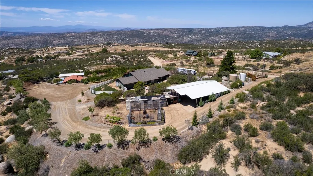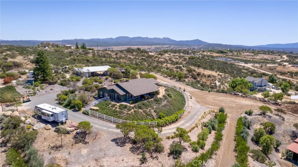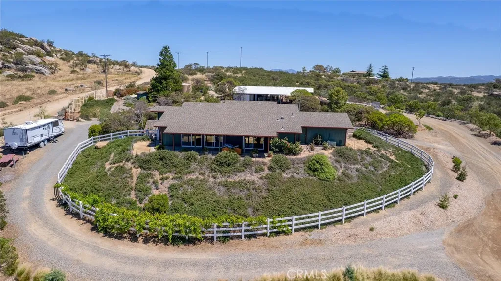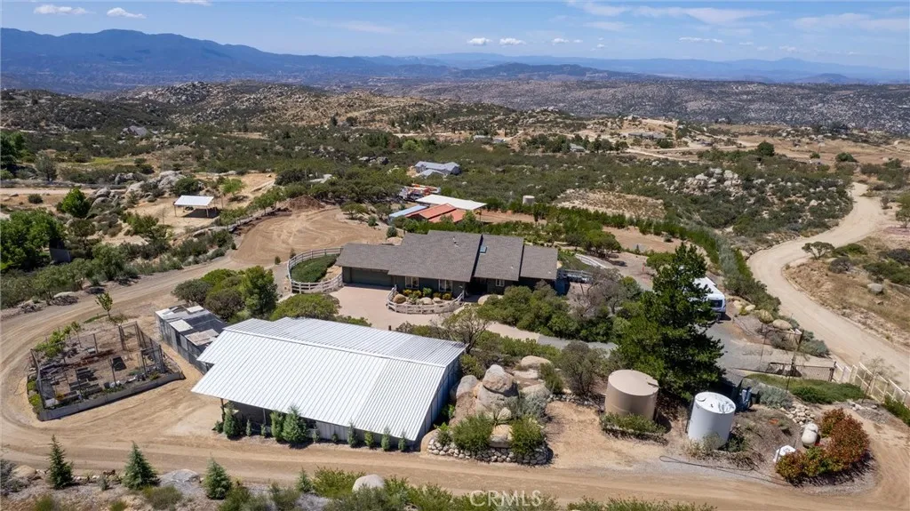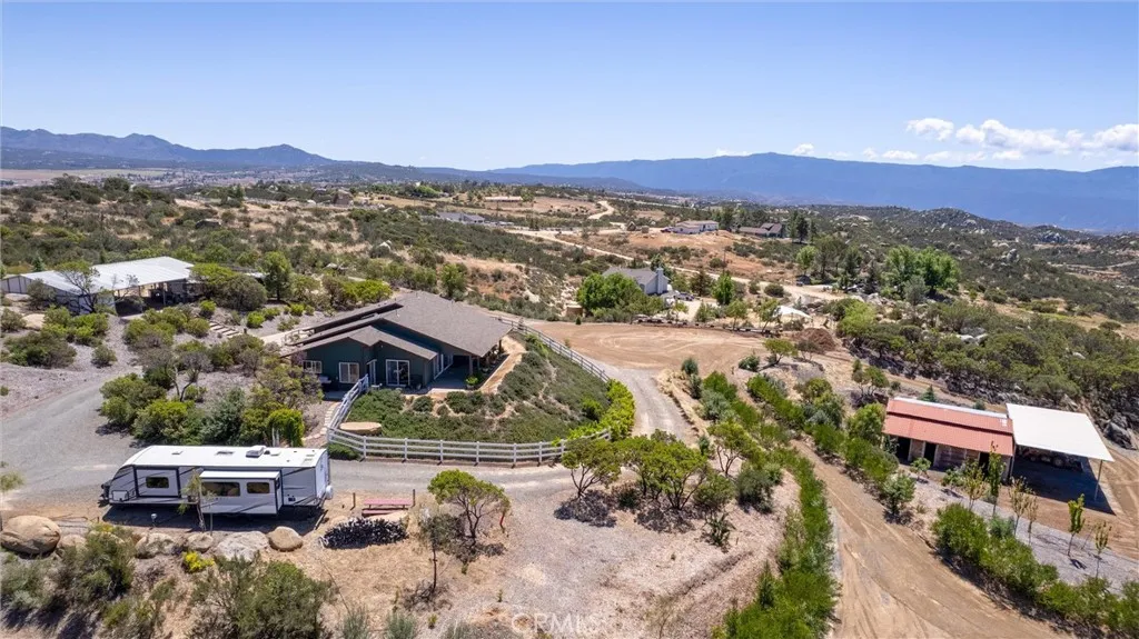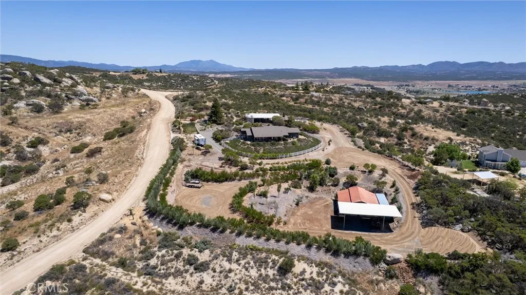Discover your private retreat in the Lake Riverside Estates community. TURNKEY HOME**TWO MASSIVE BARNS**BEST WEST FACING VIEW IN LAKE RIVERSIDE**FULLY LANDSCAPED**MULTI TIERED PROPERTY** This Turnkey 1,940 sq ft, 3-bedroom, 2-bath single-story home sits on a beautifully landscaped 2.73-acre parcel with breathtaking panoramic mountain and valley views that are simply unmatched in the area. Step inside to an inviting open-concept layout where the spacious living room flows seamlessly into the dining area and kitchen. The great room features a buffet with built-in wine refrigerator and built in entertainment center. The large, bright kitchen features an island and adjacent butler’s pantry that conveniently houses the laundry facilities. Ceiling fans throughout the home, a skylight in the entry, and solar tube lighting in both bathrooms create a light-filled and comfortable living environment. Massive windows across the back wall of the living room frame incredible outdoor vistas, while the primary suite offers its own large sliding glass door leading directly to the backyard—perfect for enjoying morning coffee or planning for a future hot tub. The primary bath boasts dual vanities and a spacious walk-in tiled shower. Outside, the fully covered patio provides the ideal setting for year-round outdoor entertaining, offering some of the best mountain and valley views in the entire community. The backyard area immediately surrounding the home is fully fenced for pet safety and enjoyment. This property is a true gardener’s and hobbyist’s paradise. The grounds are thoughtfully landscaped with approximately 300 trees—including productive fruit trees—and fragrant roses bordering the house. Multiple tiers create usable space across the acreage, with excellent access for tractors, RVs, boats, and trailers. Two versatile, massive sized, multi-use barns, each with their own sizeable carport, currently serve as workshops but can easily be converted to horse stalls, livestock quarters, feed storage, or tack rooms. The barns are on separate tiers and separate sides of the property. Ample adjacent space allows for corrals, round pens, or other equestrian facilities. A fully enclosed garden area protects against critters, while aviary space with multiple containment sections adds even more flexibility. A large, covered carport adjacent to one barn easily accommodates 3–4 vehicles and provides plenty of room for equipment, toys, and extra parking. Generac Generator too!