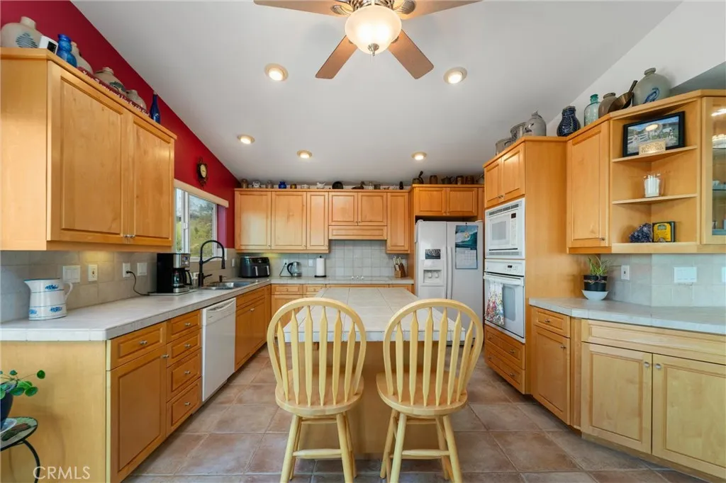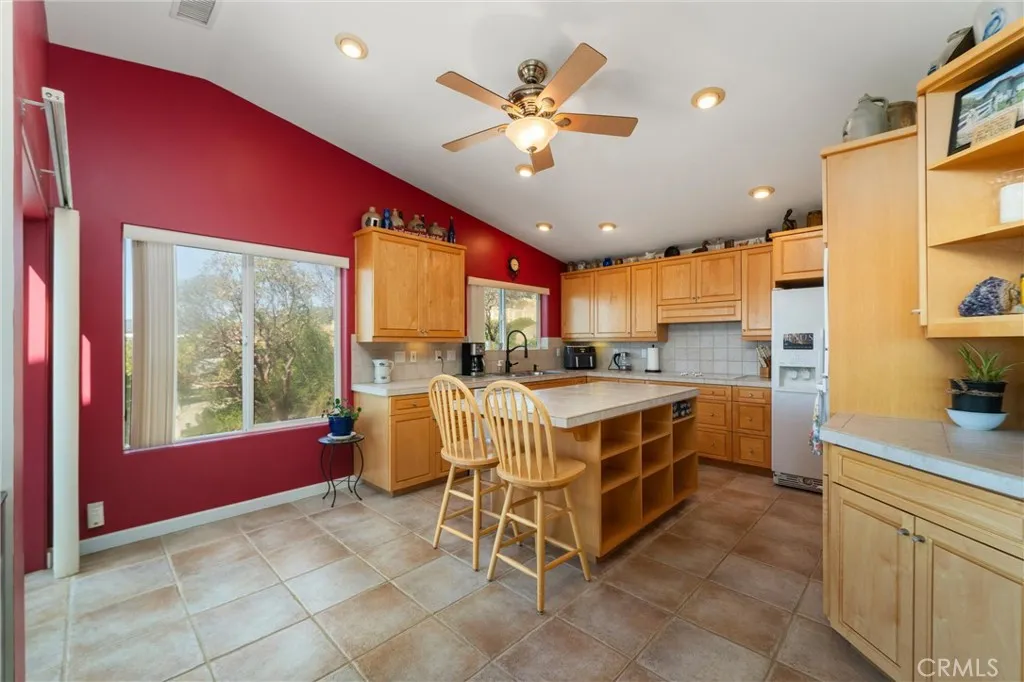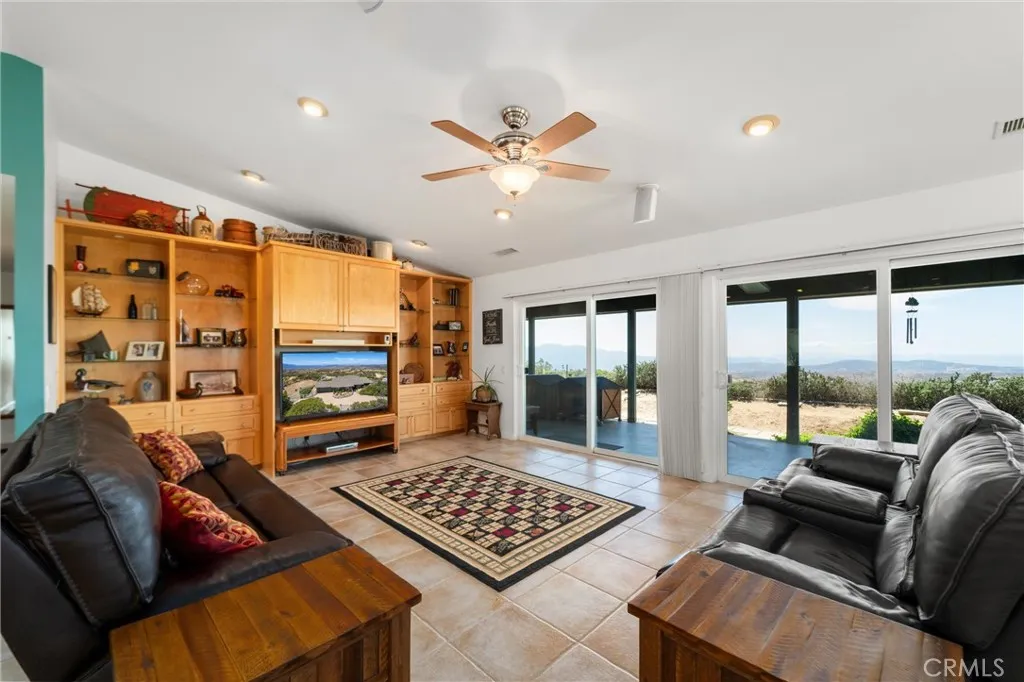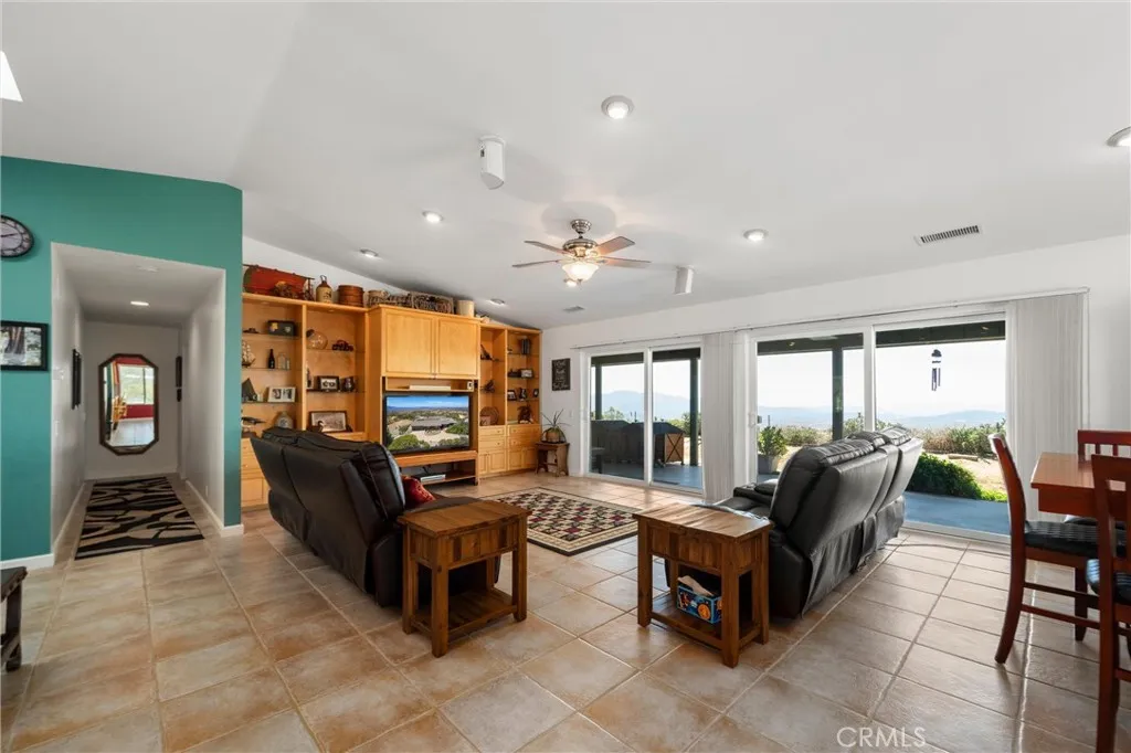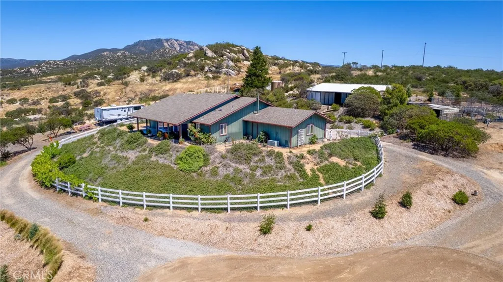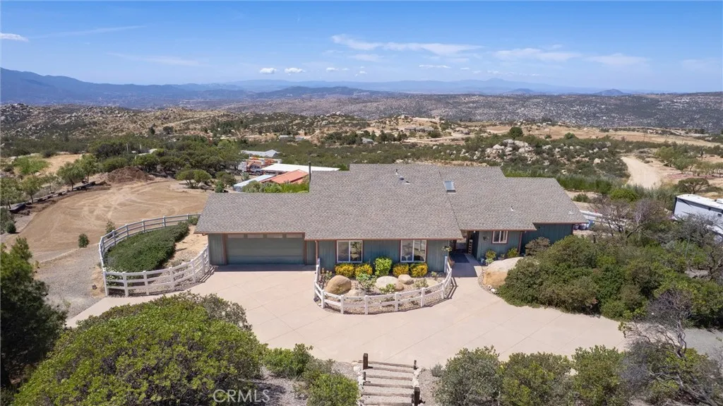 Discover your private retreat in the Lake Riverside Estates community. TURNKEY HOME**TWO MASSIVE BARNS**BEST WEST FACING VIEW IN LAKE RIVERSIDE**FULLY LANDSCAPED**MULTI TIERED PROPERTY** This Turnkey 1,940 sq ft, 3-bedroom, 2-bath single-story home sits on a beautifully landscaped 2.73-acre parcel with breathtaking panoramic mountain and valley views that are simply unmatched in the area. Step inside to an inviting open-concept layout where the spacious living room flows seamlessly into the dining area and kitchen. The great room features a buffet with built-in wine refrigerator and built in entertainment center. The large, bright kitchen features an island and adjacent butler’s pantry that conveniently houses the laundry facilities. Ceiling fans throughout the home, a skylight in the entry, and solar tube lighting in both bathrooms create a light-filled and comfortable living environment. Massive windows across the back wall of the living room frame incredible outdoor vistas, while the primary suite offers its own large sliding glass door leading directly to the backyard—perfect for enjoying morning coffee or planning for a future hot tub. The primary bath boasts dual vanities and a spacious walk-in tiled shower. Outside, the fully covered patio provides the ideal setting for year-round outdoor entertaining, offering some of the best mountain and valley views in the entire community. The backyard area immediately surrounding the home is fully fenced for pet safety and enjoyment. This property is a true gardener’s and hobbyist’s paradise. The grounds are thoughtfully landscaped with approximately 300 trees—including productive fruit trees—and fragrant roses bordering the house. Multiple tiers create usable space across the acreage, with excellent access for tractors, RVs, boats, and trailers. Two versatile, massive sized, multi-use barns, each with their own sizeable carport, currently serve as workshops but can easily be converted to horse stalls, livestock quarters, feed storage, or tack rooms. The barns are on separate tiers and separate sides of the property. Ample adjacent space allows for corrals, round pens, or other equestrian facilities. A fully enclosed garden area protects against critters, while aviary space with multiple containment sections adds even more flexibility. A large, covered carport adjacent to one barn easily accommodates 3–4 vehicles and provides plenty of room for equipment, toys, and extra parking. Generac Generator too!
