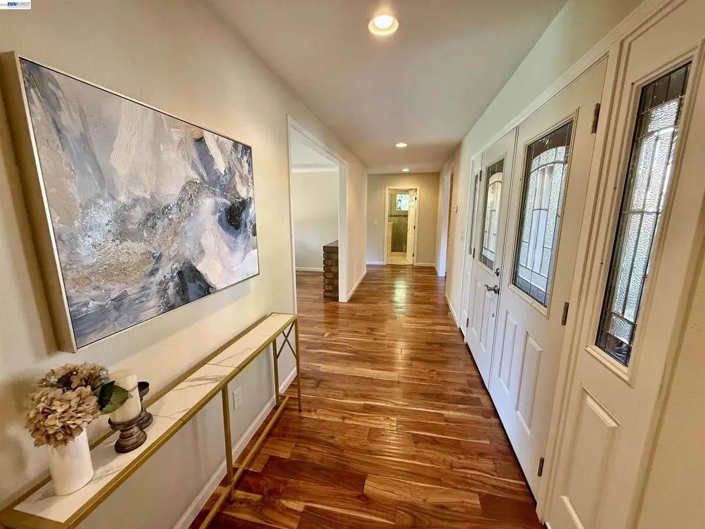 Incredible custom home set on a huge lot, offering exceptional space, versatility, and endless possibilities, including potential for an ADU. The expansive front yard is a true park-like setting, featuring beautiful mature trees, lush landscaping, and a welcoming front deck. Step inside to find stunning acacia wood floors that flow throughout the home, creating warmth and elegance. The formal living and dining room overlook the backyard, providing a picturesque setting for gatherings and everyday living. The updated kitchen features beautiful countertops, stainless steel appliances, and a cozy eat-in area, perfect for entertaining and daily enjoyment. The spacious family room offers plenty of room to relax and spend time with family and friends. Designed with flexibility in mind, this ideal floor plan is perfect for multigenerational living, featuring two primary suites: one on the first floor and another on the second floor. The first floor includes three bedrooms and two and a half bathrooms. The second level offers a primary suite with balcony, large walk-in closet and gorgeous bathroom. Additional upstairs bedroom has its own private bathroom. Step outside to enjoy the expansive grounds that truly set this property apart. The backyard is a tropical oasis, complete with a sparkling saltwater swimming pool with solar, perfect for relaxing or hosting gatherings. The large lot provides incredible potential, including space for a possible ADU, gardens, or additional outdoor living areas. Extensively remodeled in 2014, this home features updated plumbing, electrical, and modern finishes throughout. Additional upgrades include a dual HVAC system, two tankless water heaters, and an insulated/sheetrock-finished garage. This is the perfect property for entertaining and enjoying quality time with family and friends while offering comfort, flexibility, and future potential.