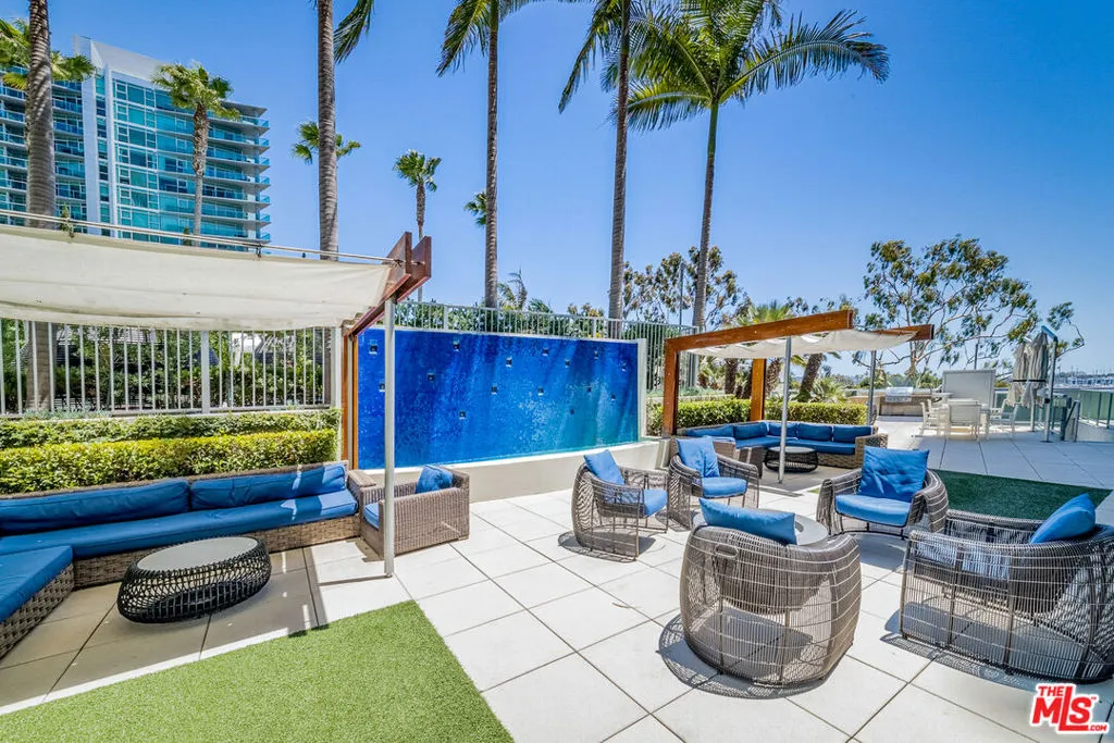 This 985 sq ft unit is a 1 bed, 1 bath located on the 10th floor of a high-rise condominium. The living room, bedroom, and closets were all updated with new laminate wood flooring within 4years ago. Walk into an open floor plan with hardwood floors and kitchen complete with granite countertops, stainless-steel appliances. Large window doors open to a balcony with a view of the mountains. The master bedroom features floor-to-ceiling windows that take up the entire wall. Walk-in closet. Tub and shower booth. Washer and dryer in unit. Each unit comes with 2 parking spaces and allows for visitors to park with 24 hr valet service. The Azzurra showcases spacious corridors, strict security with cameras, and a business center with private conference room. Amenities include residents lounge, indoor and outdoor gyms, yoga/Pilates room, an outdoor pool and jacuzzi; the rooftop deck Sky Lounge overlooks the Marina Bay with 360 views and BBQ grills, dining area, and jacuzzi. The building is animal-friendly and has easy access to a bike trail and walking path.
