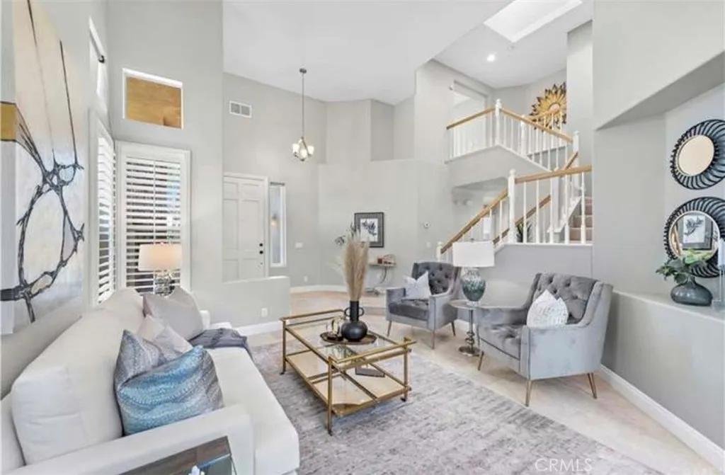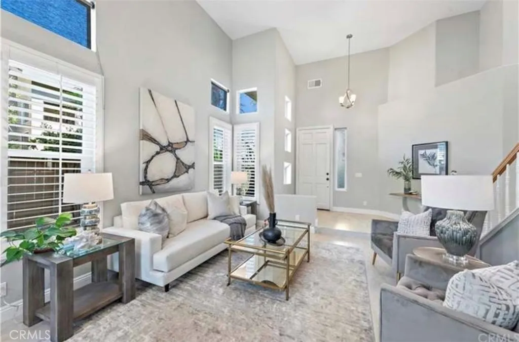 Located in the serene hillside community Foothill Ranch is 62 La Perla. This amazing, 4 bed, 3 bath, two-story home was completely remodeled in 2017 and features an open floor plan that showcases a generous family room complete with a cozy fireplace. The kitchen includes custom counters, custom backsplash, a walk-in pantry, and stainless steel appliances. Glass doors in the kitchen area enhance the indoor-outdoor flow of the home. Lush greens are found across the generous lot that the home sits on. Immense backyard has plenty of privacy and is perfect for entertaining. Other features include spacious master suite, upgraded bathrooms, three-car garage, stunning dining area, energy-saving windows, and many more. Location is in the heart of Foothill Ranch, making it convenient and close to shopping centers, parks, toll roads, and award-winning schools. The amazing community also includes many amenities, such as pool, spa, sports courts and trails. (Photos were taken during sale of the home and furniture was added for staging. Home is to be leased unfurnished.)