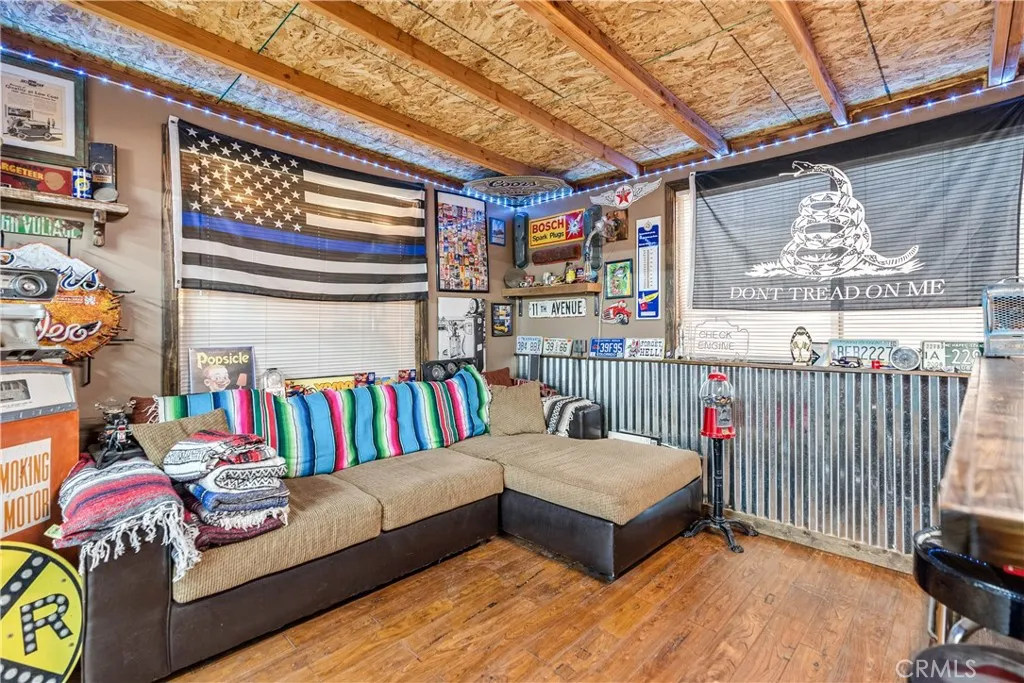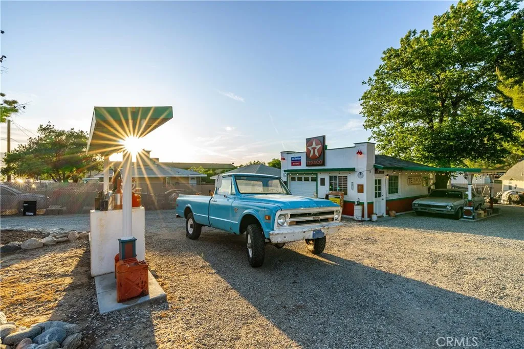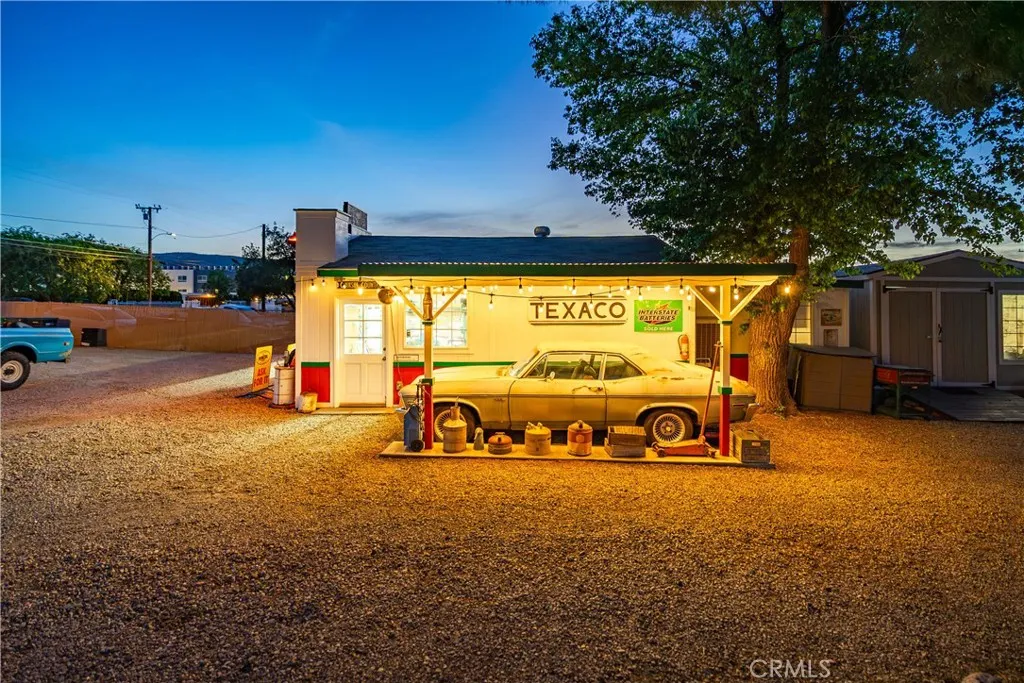 Now is the chance to live in one of the most unique homes, known as the ''Gas Station House'' in the heart of Quartz Hill! This awesome, updated 1-bedroom, 1-bathroom home is situated on .24 acres and within walking distance of the quaint town of Quartz Hill. As you approach the home, the intriguing vision of an early-1900s-era gas station stands out, with vintage yard art, signs, and a gas pump. The custom-built A-frame-style home greets you with a walkway and front porch. Step inside to appreciate some of the upgraded features, including LVP flooring, recessed lighting, updated plumbing, 2 split-units for efficient heating and cooling, and ceiling fans throughout. The kitchen offers granite countertops, multiple cabinets, and stainless steel appliances, including a refrigerator, and is adjacent to the dining room. The living room feels cozy yet has a vaulted ceiling offering plenty of natural lighting and a ceiling fan. The bathroom is updated with modern features of a custom tile shower/tub enclosure and a pedestal sink. The bedroom includes neutral-colored carpet and a ceiling fan. The property offers RV access, a Connex unit, gated animal quarters featuring two pens, one of which is insulated and has two windows, a shed that has been remodeled, and a detached garage and bar area. Conveniently located near schools, a park, restaurants, shopping, and amenities. Schedule an appointment to view this home today!
