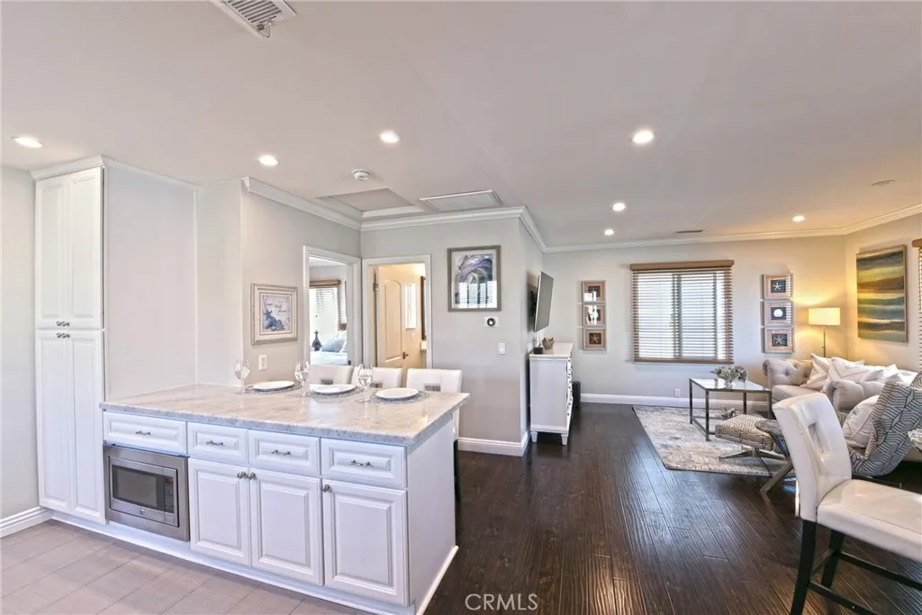 Fully furnished executive beach cottage in one of the best locations on the peninsula is ready for summer and long term rental! This adorable, nicely remodeled, immaculate single level carriage unit above a garage is completely detached and private with no one living above or below. Enjoy an ideal second home at the beach for the summer or as a primary residence. Abundant natural light in this bright upper level rear unit was recently renovated with new paint (inside and out), hardwood flooring throughout, cozy Carrera marble fireplace, central A/C, private washer/dryer, crown molding and large gourmet kitchen with Carrera marble counter tops/backsplash, breakfast bar, Viking SS refrigerator, SS hood, new gas range, dishwasher, microwave, washer/dryer and high quality designer furnishings. A full bathroom with tub/shower was recently updated. Convenient enclosed bike storage area and new BBQ grill for your exclusive use. Ideal location just 2 blocks to the sand and the crashing waves of the Pacific Ocean or just a 1/2 block to launch your kayak or paddleboard in Newport Harbor. Located equal distance between both piers on less traveled and highly desired West Bay Avenue. The extra wide street offers ample parking and some of the peninsula's most expensive waterfront homes directly across the street! Short bike ride to Balboa Island, Huntington Beach or the famous Wedge for surfing or just a few blocks walk to the oceanfront boardwalk to take in breathtaking views of golden sunsets over the Pacific with a backdrop of Catalina Island or quick access coastal gem eateries offering casual or fine dining. This part of the peninsula has significantly reduced density, noise and traffic and truly an amazing location with easy access to all the great amenities and lifestyle offered on the peninsula. The owners prefer long term tenants and the list price shown is for long term rental (8-12 months) but owner may consider shorter term for the summer months with minimum 90 days at significantly higher monthly rent due to high demand for the peak summer season and reduced term. Maximum occupancy is 2 people. Enjoy the ultimate beach-close lifestyle and quality accommodations available just in time for Memorial Day Weekend! One space in the 2 car garage may be available at additional cost. Hurry, this is a great, affordable opportunity to live in luxury at the one of the finest locations on the peninsula! Turn-Key immaculate, just bring your clothes and beach chair!