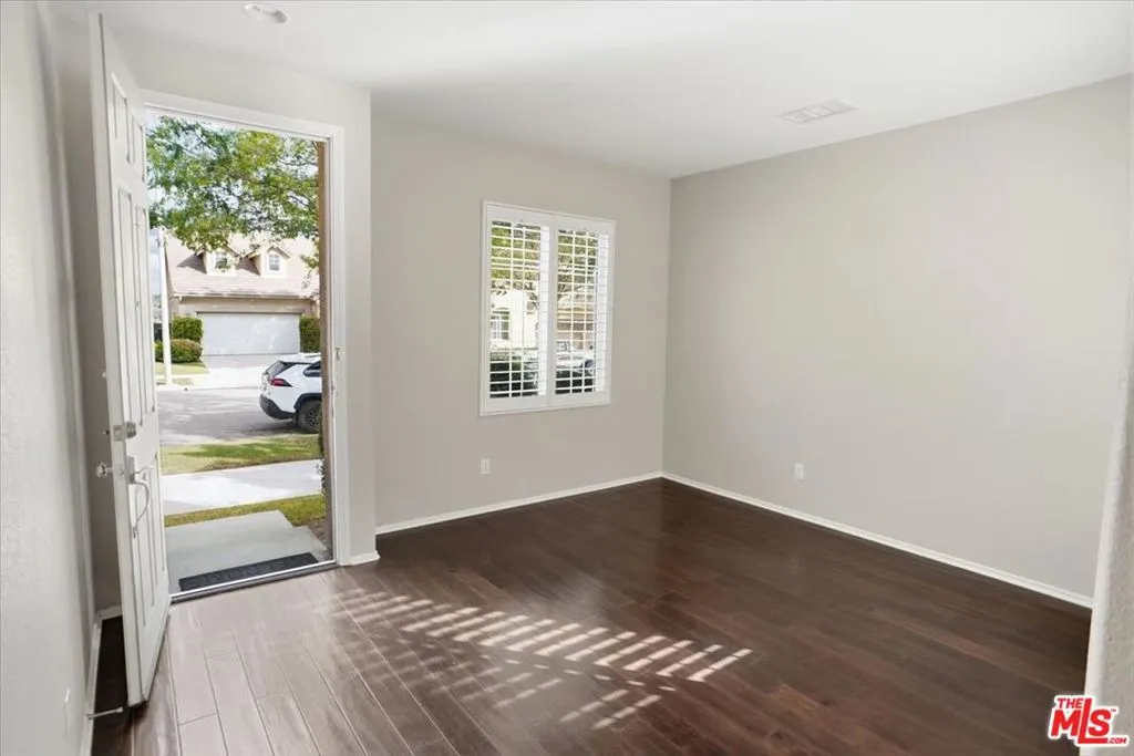 Beautiful three-bedroom home with a loft located in the highly desirable Alta Vista neighborhood of Valencia. This spacious home offers an inviting floor plan with hardwood flooring throughout the formal living room, dining room, and family room, along with shutters, recessed lighting, ceiling fans, and a cozy fireplace with a mantle and built-in entertainment niche.The kitchen opens to the family room and is designed for both everyday living and entertaining, featuring a center island, tile countertops, abundant cabinet space, and appliances that include a gas cooktop, single oven, microwave, dishwasher, and refrigerator. A sliding glass door leads to a private backyard with a stamped concrete patio, creating a comfortable outdoor space to enjoy.Upstairs, the loft offers flexible living space, shutters, and built-in shelving. The spacious primary suite includes two walk-in closets and an attached bathroom with dual vanities, a garden tub, and walk-in shower. Two additional bedrooms upstairs, one includes French doors that open to a balcony.Additional highlights include an upstairs laundry room with a full-size washer and dryer, extensive cabinet storage, a downstairs half bathroom, and a tandem garage. Residents can also enjoy community amenities including a pool, spa, and playground.This home is conveniently located near shopping, restaurants, schools, and the 5 Freeway.No pets. Tenants are required to obtain renters insurance. After viewing the property with a leasing agent, applications may be submitted online. Please do not disturb occupants. This is private property and no trespassing is permitted.