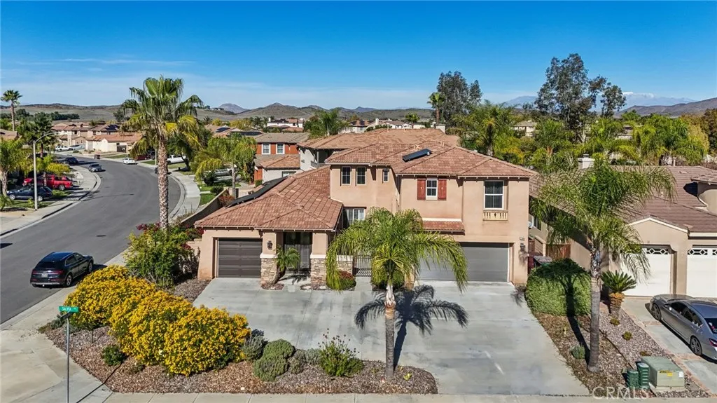 Executive Living in the Highly Desirable Morning Star Ranch Community of Winchester Welcome to this expansive and beautifully updated executive residence, offering the ideal blend of luxury, comfort, and versatility. Located in the sought-after Morning Star Ranch community, this 2-story home features 4 spacious bedrooms, including a main-level primary suite, and 2.5 bathrooms, with a generous 3,157 square feet of thoughtfully designed living space. Enjoy cozy evenings by two gas fireplaces—one in the main living room and another in the family room—adding warmth and charm throughout. Situated on a premium corner lot at the entrance of a quiet cul-de-sac, this home enjoys exceptional privacy, enhanced curb appeal, and a sprawling 8,712+ square foot lot. A charming private courtyard entry with a tranquil fountain welcomes you into this elegant home. Step inside to a freshly updated interior, showcasing new paint and modern flooring throughout, setting the stage for stylish and comfortable living. The gourmet kitchen is a chef’s dream—perfectly equipped for both everyday functionality and effortless entertaining. This home offers unique features, including a separate double-door entry to a private room ideal for a home office, guest suite, or potential ADU, providing flexibility for multigenerational living or rental income potential. The three-car attached garage adds incredible utility. This home is equipped with high-efficiency solar panels. Additional highlights: • No HOA • Lower property taxes • Close proximity to top-rated schools, parks, shopping, medical facilities, and Temecula Wine Country This is a rare opportunity to own a one-of-a-kind home in one of Winchester’s most desirable neighborhoods. Temecula School District. A true must-see!