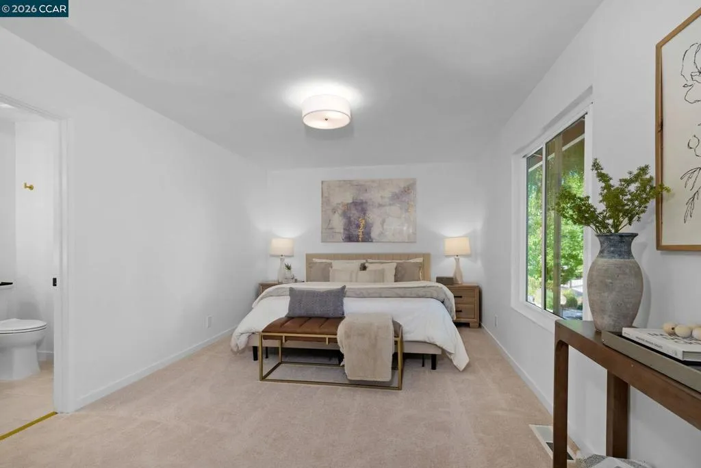 Welcome to 2840 Royal Ann Lane, a beautifully fully updated end-unit townhouse tucked into one of Concord’s most sought-after communities, Cherrywood. Offering the perfect blend of style, comfort, and convenience, this spacious 3-bedroom, 2.5-bath home with garage, lives effortlessly for both everyday living and entertaining. Step inside to a light-filled living room anchored by, a cozy fireplace with a chic shiplap surround, custom tile detail, and warm wood mantle. A charming bay window frames serene views of the lush greenbelt, creating a peaceful and inviting atmosphere. The stunning, fully renovated kitchen features sleek quartz countertops, custom cabinetry, and brand-new appliances, all seamlessly opening to the dining area and a sun-drenched private patio, ideal for morning coffee, outdoor dining, or relaxed evenings with friends. Upstairs, three generously sized bedrooms provide comfortable retreats, including a private primary suite with a beautifully updated en suite bath. An additional updated full bathroom offers convenience for family or guests. The updates in the bathrooms include a new shower surround in the primary and all baths have new flooring, vanities, faucets, toilets, mirrors and lights. Throughout the rest of the home, you’ll find new flooring, fresh paint, updated lighting, and modern hardware, with a brand-new HVAC system to be installed prior to close for added peace of mind. Perfectly positioned within the community, this home is just steps to parking, the pool and tennis courts, offering a lifestyle that feels both relaxed and connected. And the location truly shines, just blocks from two great dining and shopping centers, Oak Grove Plaza & Countrywood, with easy access to BART and Interstate 680, making commuting and exploring the Bay Area effortless. This is the one you’ve been waiting for, stylish, move-in ready, and ideally located.