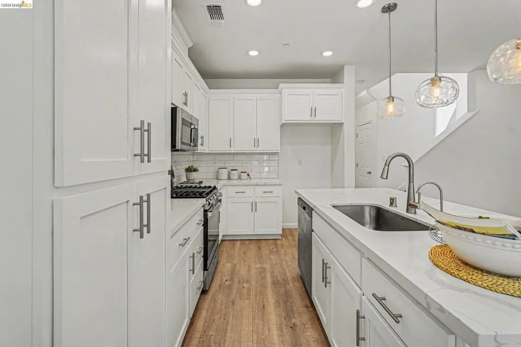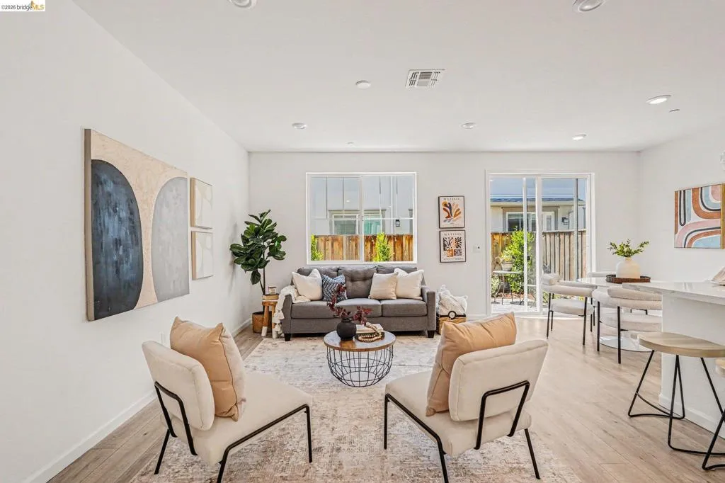 Located in the highly desirable San Marco community known as Vista Del Mar, this stylish and energy-efficient duet, built in 2022 by Taylor Morrison, offers 3 bedrooms plus a versatile loft/flex space, 3 bathrooms, and an attached 2-car garage with EV charging. The beautifully fully landscaped yard complements a long list of upgrades, including a 3.15 kW owned solar system, wood laminate flooring, spacious primary bedroom with huge walk-in closet, upstairs laundry, tankless water heater, whole house attic fan, and central heat and air. The upgraded kitchen features white satin shaker-style cabinetry, elegant quartz countertops, pendant lighting, and a reverse osmosis water filtration system. HOA amenities include basketball courts, bocce, and a picnic area. Ideally located just minutes from BART and a short drive to popular spots like Starbucks, Sprouts Farmers Market, and Cold Stone Creamery, this home offers a prime location for East Bay and city commuters. This home is truly turnkey and move-in ready from top to bottom! OPEN HOUSE this SUNDAY 12-3pm.