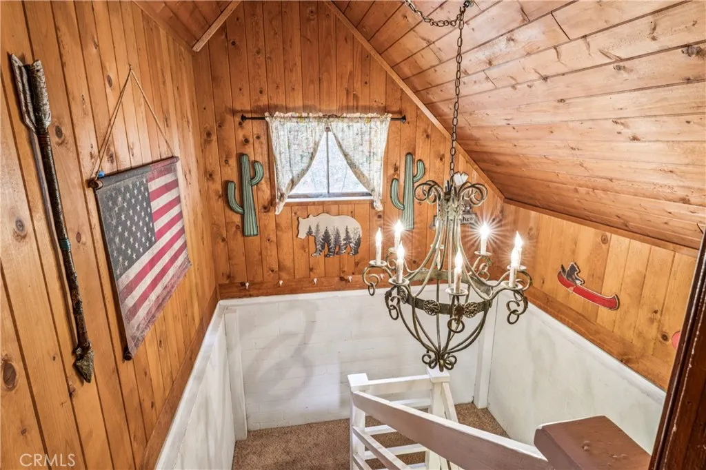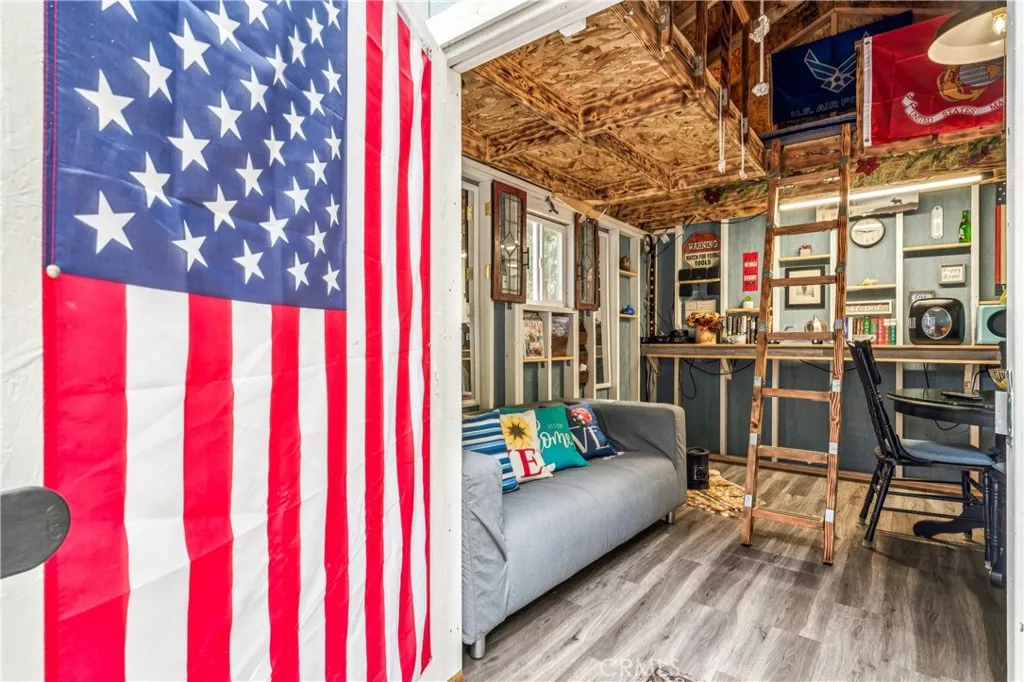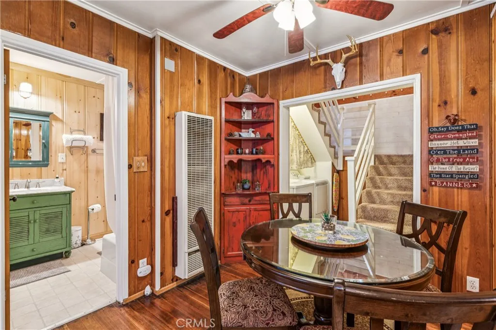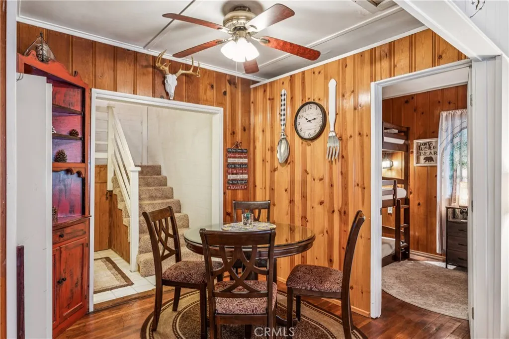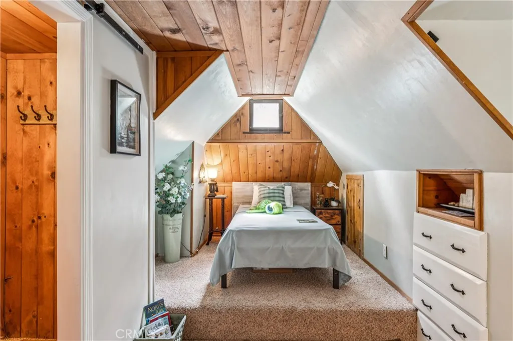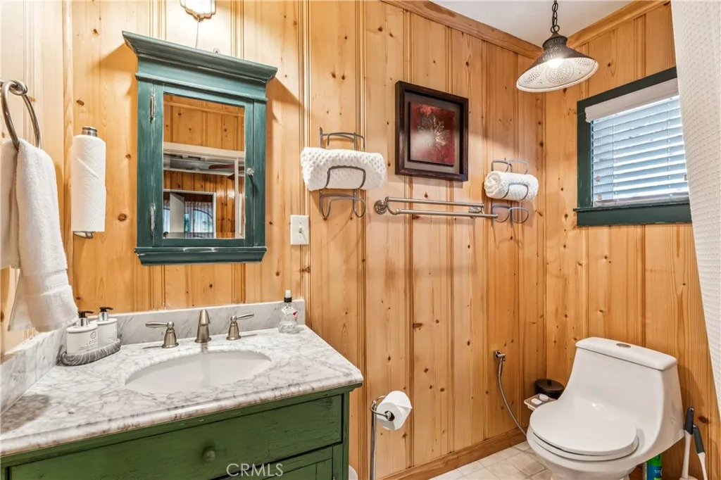 1923 Blue Jay vintage cabin backing to protected forest. Full of original charm and thoughtfully updated over the years, this 3-bedroom mountain retreat sits on a quarter-acre lot in a prime location less than a quarter mile from Blue Jay shops and restaurants and about half a mile to the lake. Features include an updated kitchen with Bosch dishwasher, updated full bath with original tub, updated plumbing and electrical, refurbished stone fireplace, and original refinished hardwood floors. The expanded downstairs bedroom accommodates a triple bunk bed plus a single bed, with two additional bedrooms upstairs. Recent improvements include interior and exterior paint, newer blinds, updated light fixtures selected to match the cabin’s vintage character, added corner cabinets, newer Trex front patio, umbrella solar lights, and firepit. Detached original deep single-car garage with stone walls provides great storage. A newer guest house on the side plateau offers space for up to 3 guests or flexible use as a storage structure. Set among mature cedar and pine trees, with access to nearby hiking trails and street-side parking for 3–4 cars, this furnished mountain getaway captures the charm of early Lake Arrowhead living.