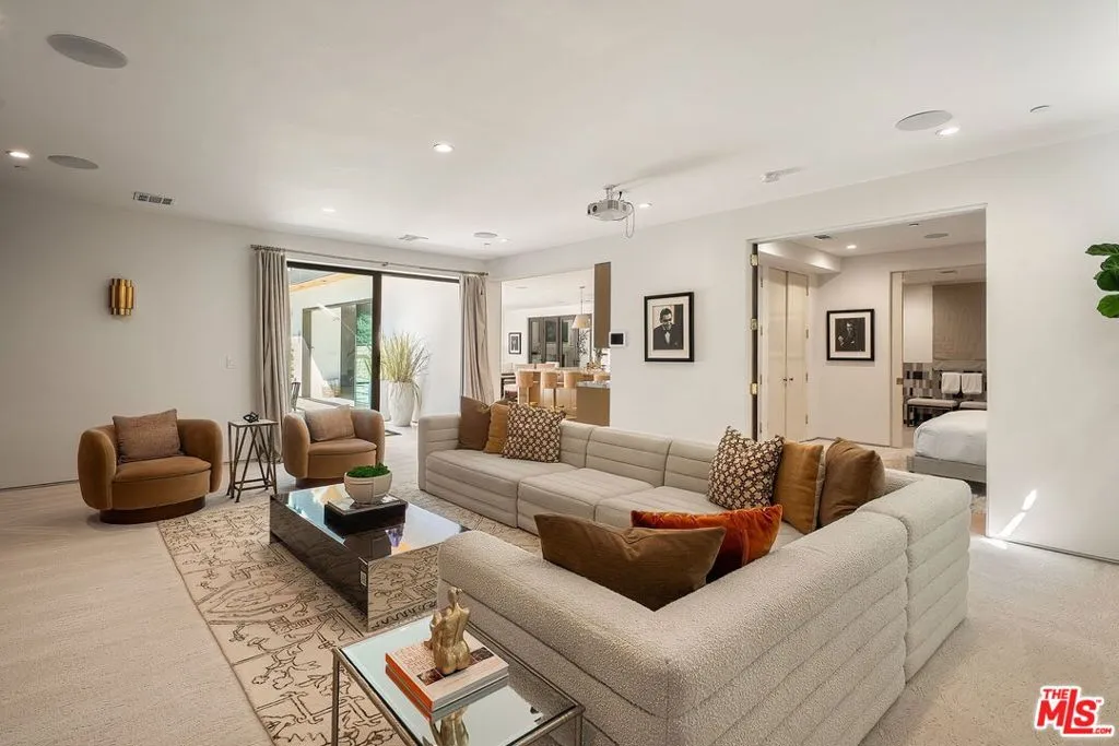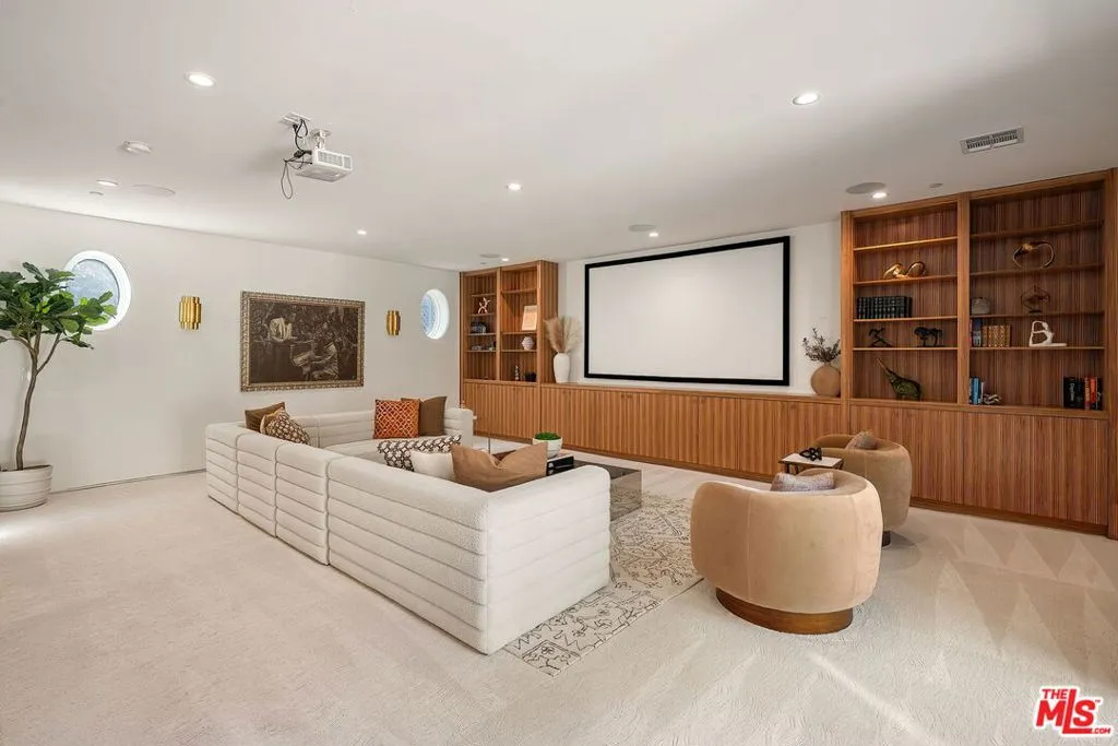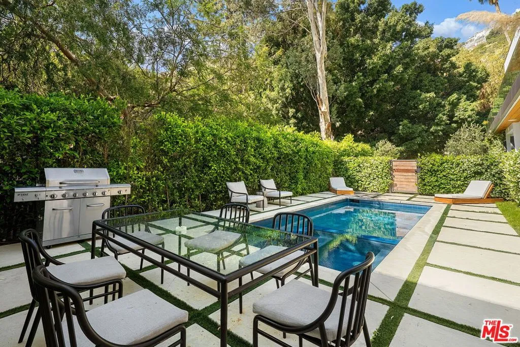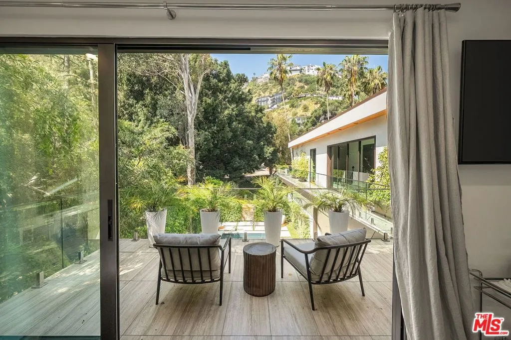 Newer construction pool home behind gate and hedges with peaceful mountain views on quiet and easily accessed Laurel Canyon Road. A breathtaking modern retreat located just a few blocks North of Sunset in the magical Laurel Canyon Neighborhood, famously popularized by rock stars like Stevie Nicks, Jim Morrison, the Eagles, Jackson Browne, Jimmy Hendrix, Linda Ronstadt and Rufus Wainwright.Conveniently located minutes from Sunset Plaza, Chateau Marmont, and shopping and dining in West Hollywood or Beverly Hills.Enjoy designer done interiors with white oak kitchen cabinets perfect for entertaining, open floor plan, a home theatre screening room, State of the art home sound system, built in security system, advanced home control features make life easy. Open the walls of glass and the fragrant night-blooming jasmine fills the air.Easily accessed as it is located on the quiet "Laurel Canyon Road" adjacent to Laurel Canyon near famous Pace restaurant misty Canyon light fills the generous rooms. The gas fireplace provides a cozy place to warm up after a swim. Up the glass, steel and ebonized wood staircase we find 4 full sized bedrooms, including a large primary , with exterior balcony space for sunbathing and reading.