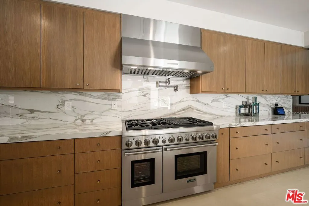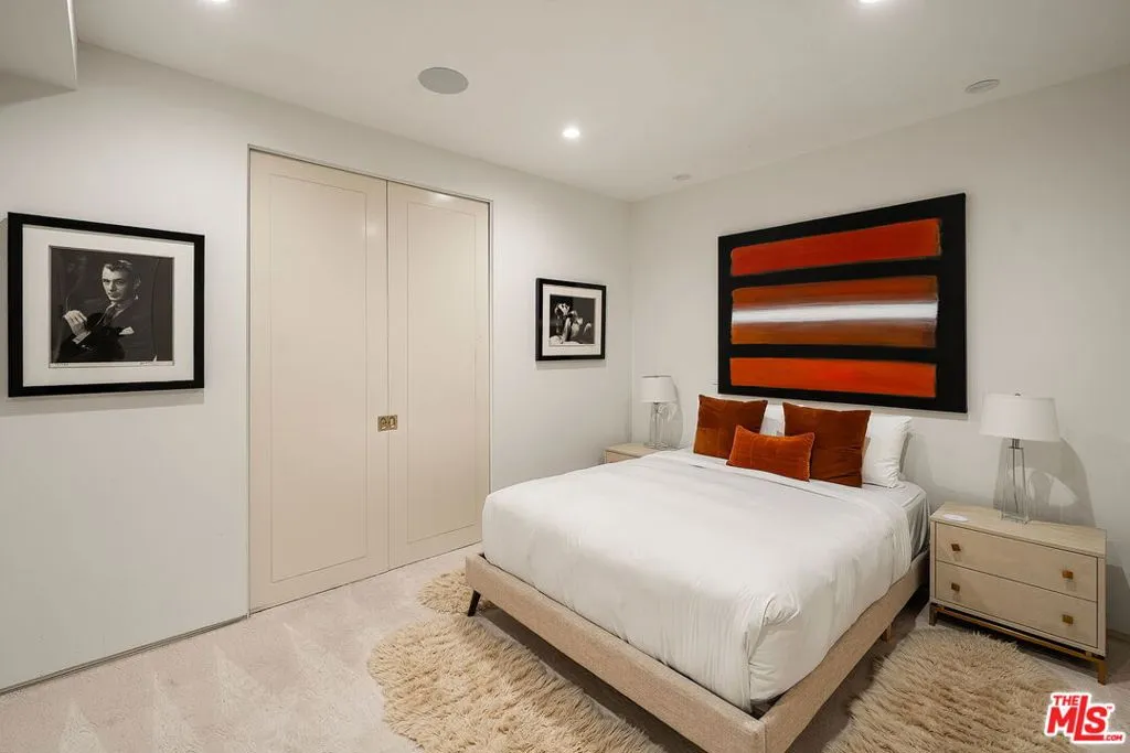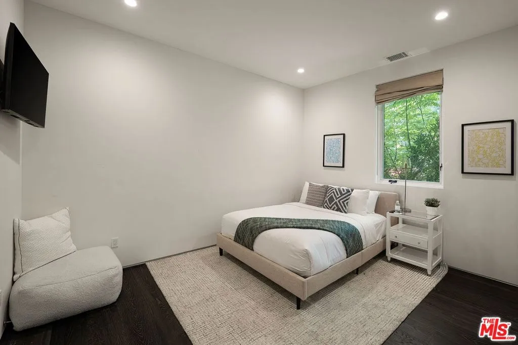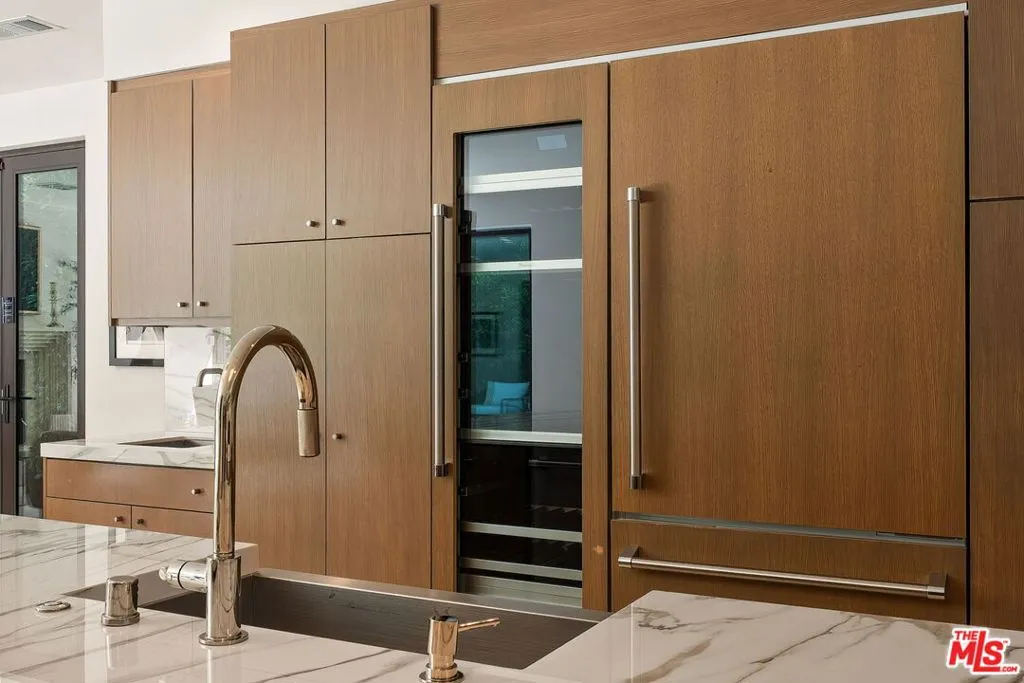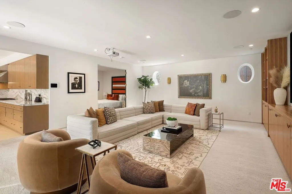 Newer construction pool home behind gate and hedges with peaceful mountain views on quiet and easily accessed Laurel Canyon Road. A breathtaking modern retreat located just a few blocks North of Sunset in the magical Laurel Canyon Neighborhood, famously popularized by rock stars like Stevie Nicks, Jim Morrison, the Eagles, Jackson Browne, Jimmy Hendrix, Linda Ronstadt and Rufus Wainwright.Conveniently located minutes from Sunset Plaza, Chateau Marmont, and shopping and dining in West Hollywood or Beverly Hills.Enjoy designer done interiors with white oak kitchen cabinets perfect for entertaining, open floor plan, a home theatre screening room, State of the art home sound system, built in security system, advanced home control features make life easy. Open the walls of glass and the fragrant night-blooming jasmine fills the air.Easily accessed as it is located on the quiet "Laurel Canyon Road" adjacent to Laurel Canyon near famous Pace restaurant misty Canyon light fills the generous rooms. The gas fireplace provides a cozy place to warm up after a swim. Up the glass, steel and ebonized wood staircase we find 4 full sized bedrooms, including a large primary , with exterior balcony space for sunbathing and reading.