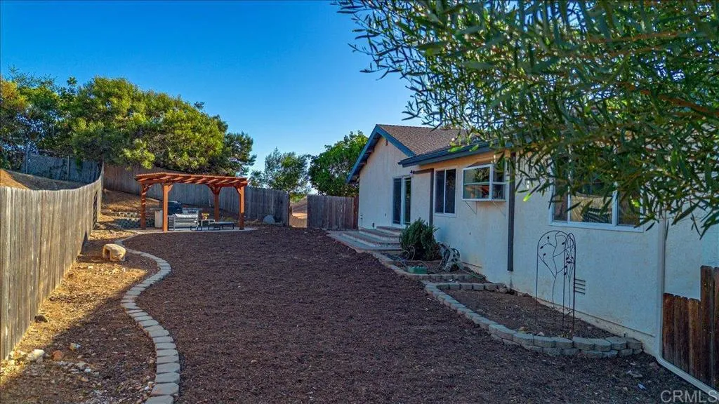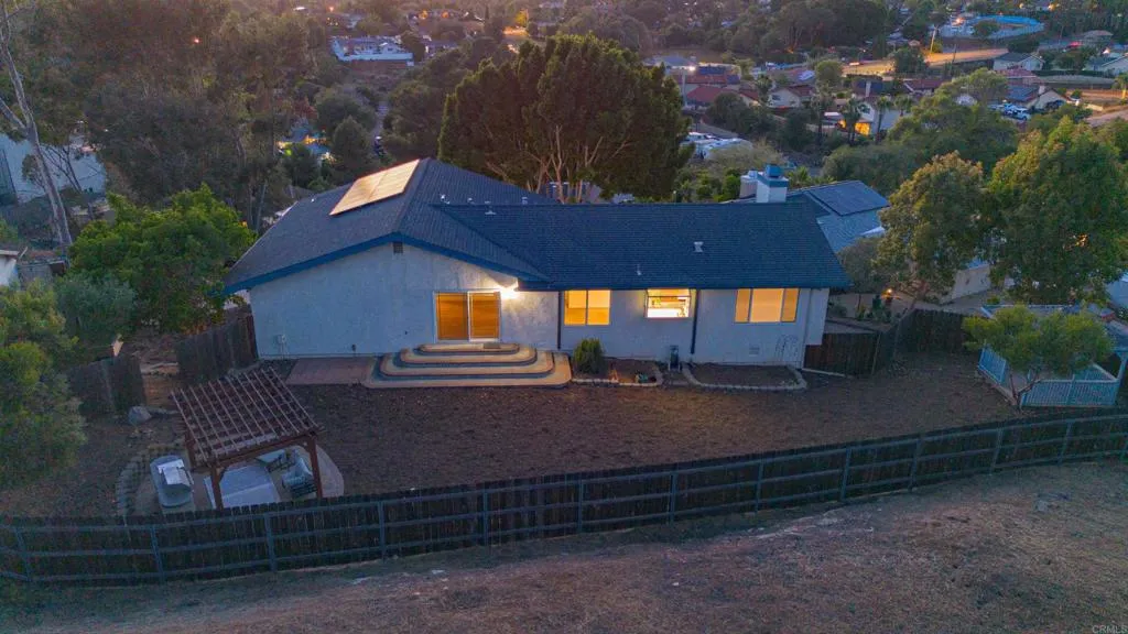 Mt. Helix foothills retreat situated at the crest of a private cul-de-sac. This bright and airy split-level California contemporary features 4BR, 3BA, a 3-car garage, and stunning views from nearly every room. The primary suite offers a massive walk-in closet, while the living room boasts vaulted ceilings and a floor-to-ceiling stone fireplace. Maximize comfort and efficiency with fully owned solar, Tesla Powerwall, EV charging, dual-pane windows, and individual mini-split HVAC units in every room. Move-in ready with new luxury vinyl plank flooring, fresh paint, and a new refrigerator, washer, and dryer. The .37-acre lot includes a gazebo, built-in BBQ, and storage shed with ample space for your custom landscaping vision. Experience hilltop serenity just minutes from schools, dog park, shopping, and dining.