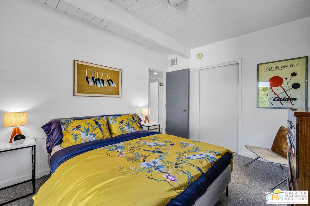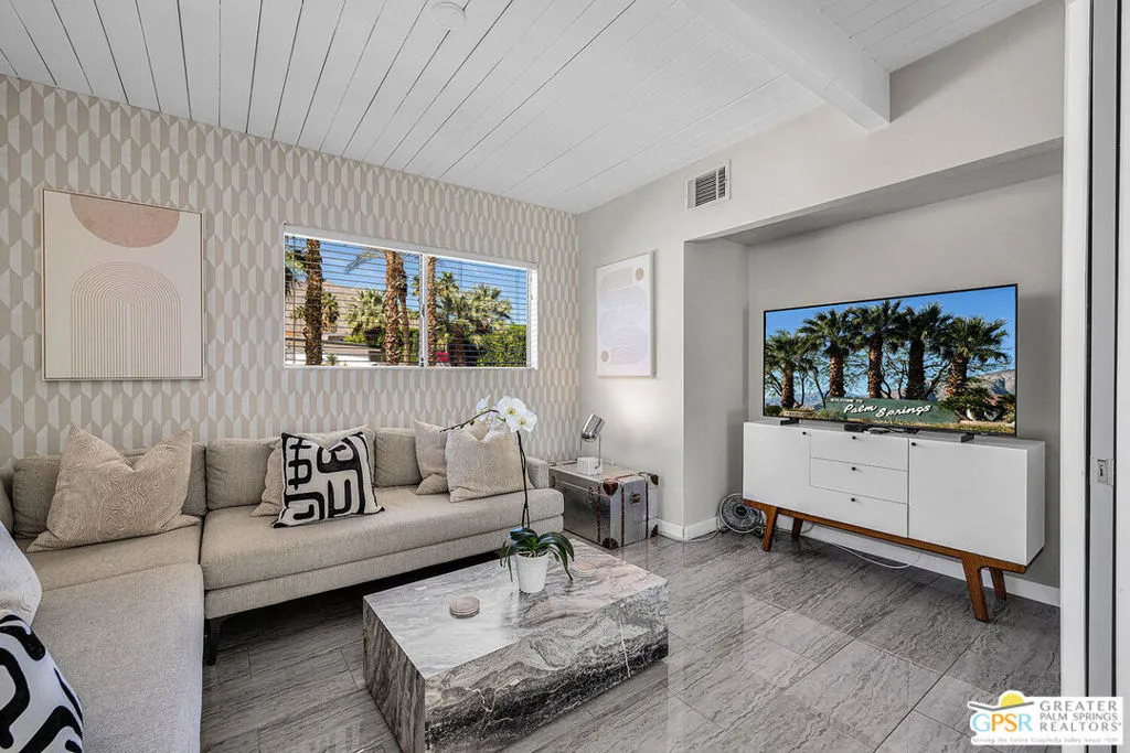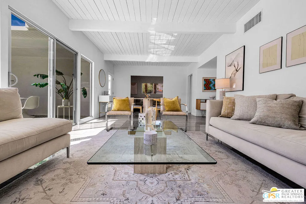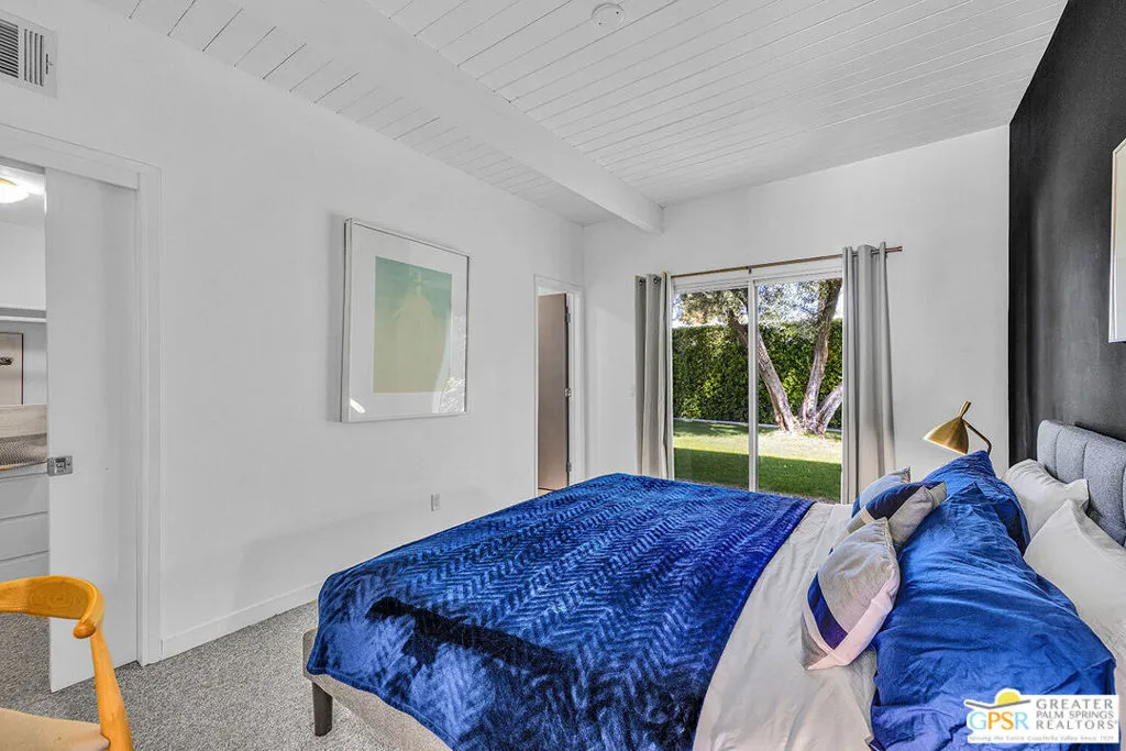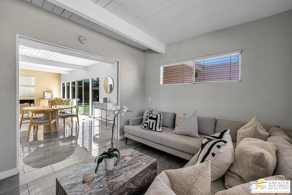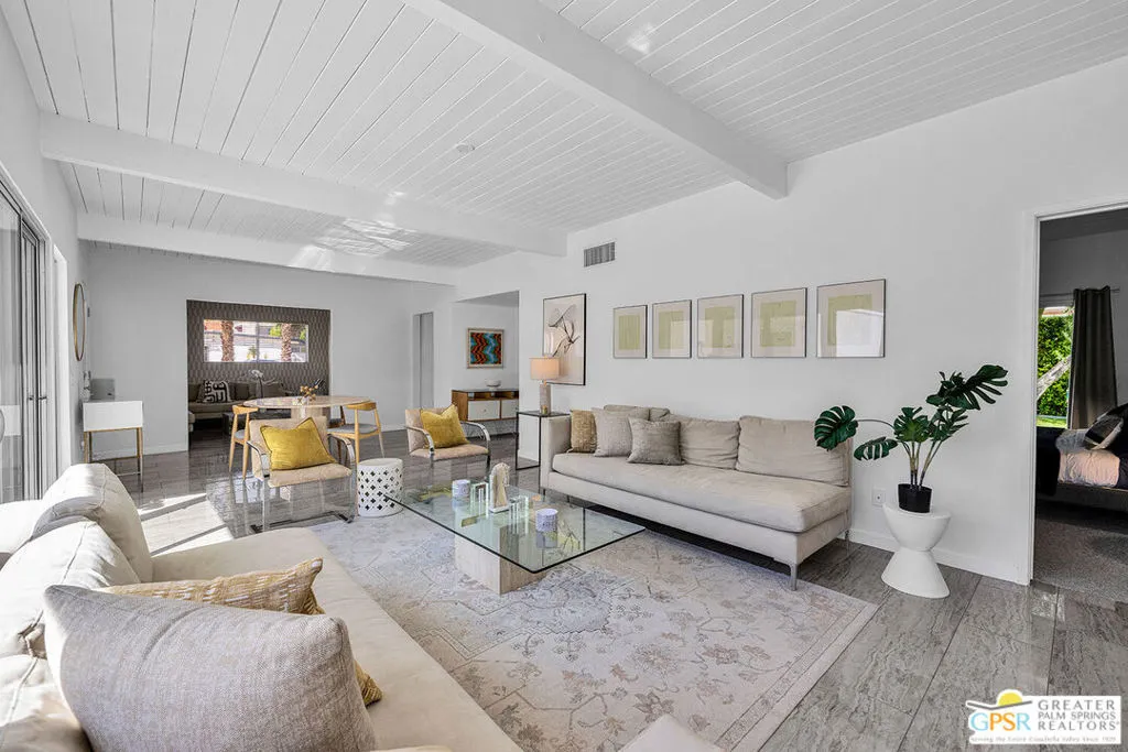 Discover this beautifully preserved mid-century modern home on a quiet cul-de-sac in the southern part of Racquet Club Estates. Designed and built in 1959 by noted Palm Springs developer Jack Meiselman, this stylish residence captures the essence of classic desert living. The thoughtful floor plan offers great bedroom separation, with a flexible third bedroom that works well as a den, office, or guest space. The inviting living room centers around a charming fireplace and opens to a dramatic south-facing wall of glass that fills the home with natural light. The semi-galley kitchen is well appointed and ready for everyday living or entertaining. Outside, enjoy a sparkling kidney-shaped pool, a covered patio for al fresco dining, a fire pit for cool desert evenings, and an expansive rear and side yard with room to expand. Offered turnkey furnished, this is a wonderful opportunity to enjoy the Palm Springs lifestyle in an iconic architectural setting. Contact the listing agent to schedule a private showing.
