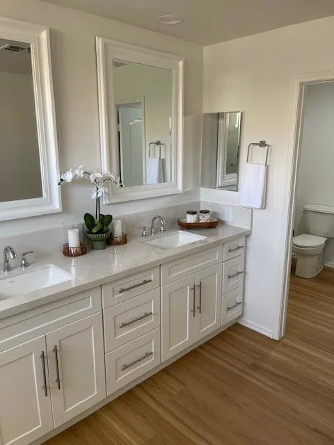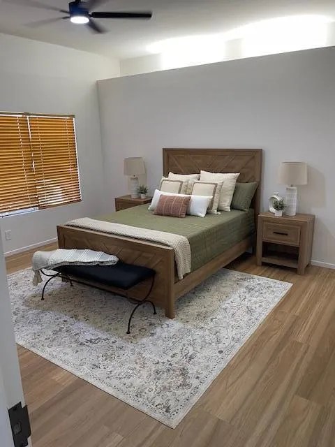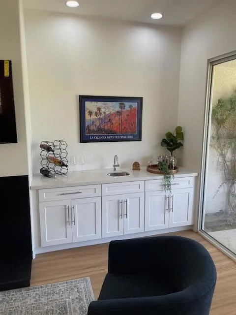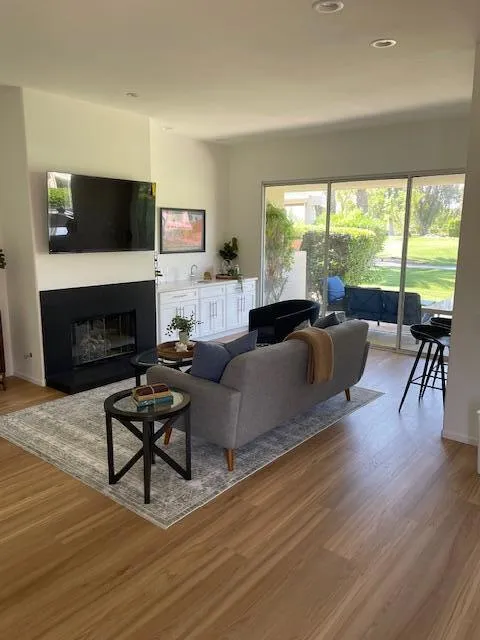 Newly Remodeled 3 bedroom 3 bath Home with 3 car garage has a West facing Mountain View. Best price for this 2259 sq. ft. floor plan available. All new GE appliances to include double oven, gas stove, French door refrigerator with ice maker in door. New washer/Gas dryer. New Kitchen/Bath cabinets with soft close drawers & doors, new quartz counter tops throughout., New sinks faucets. Decora switches. New ceiling fans and LED light fixtures, new flooring, fireplace hearth, new paint. Includes new 65'' Samsung smart TV. This lovely remodeled home is steps to the pool, guest parking close by. Upstairs bedroom can be used as secondary primary bedroom for 2 families or guests. 2 Bedrooms 2 baths downstairs. Tankless water heater. Newer HVAC. Furniture can be purchased. Why purchase a home that needs work, when you can purchase with the work completed?
