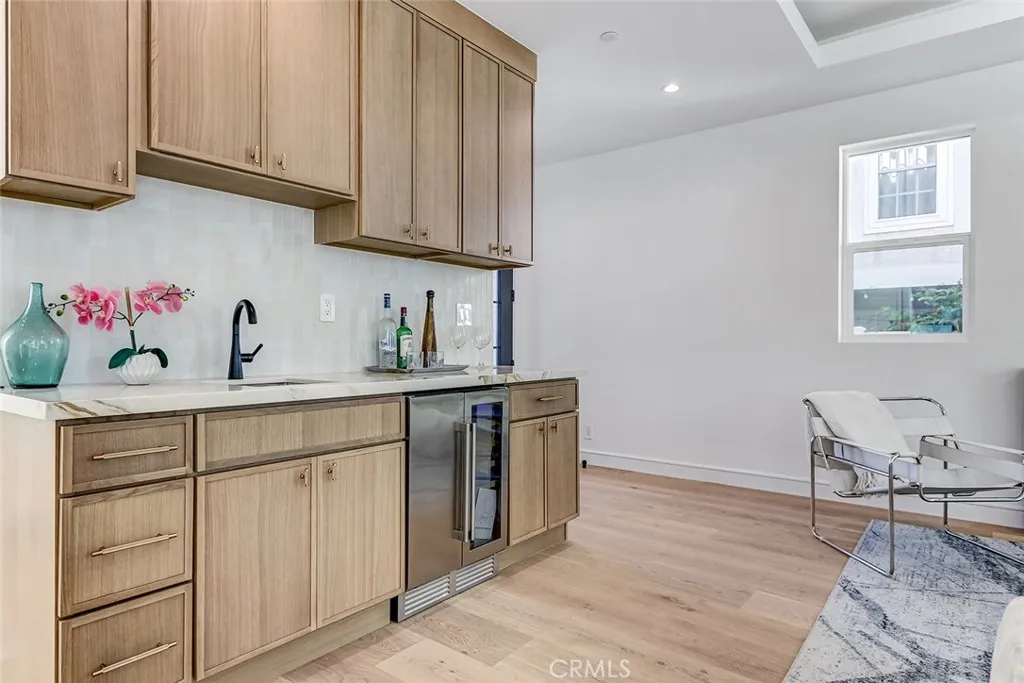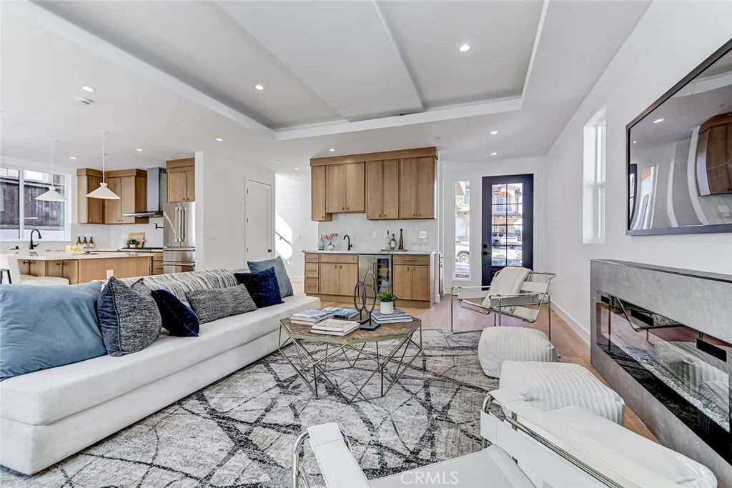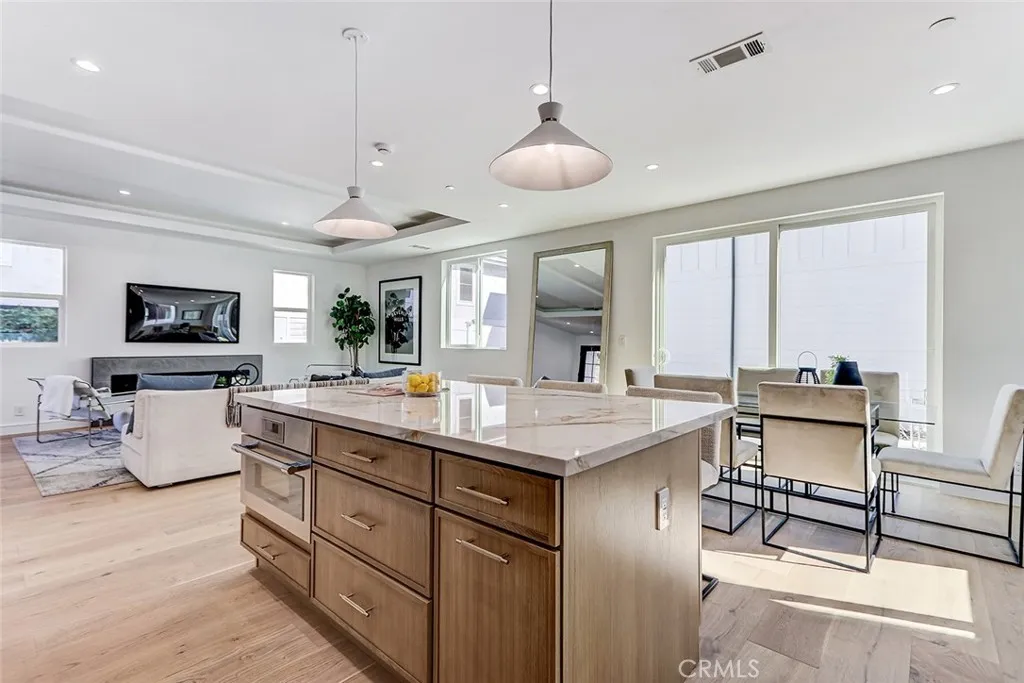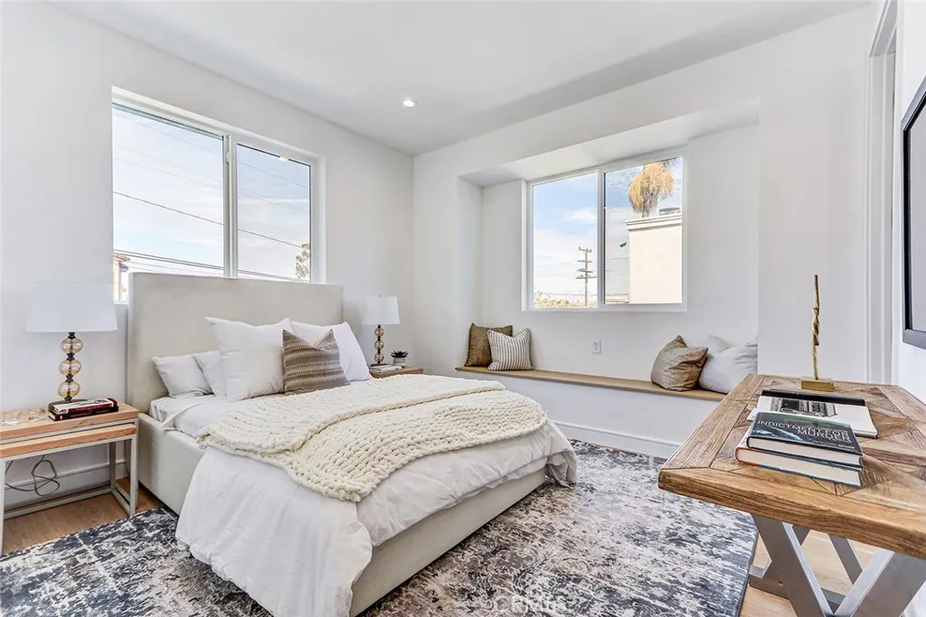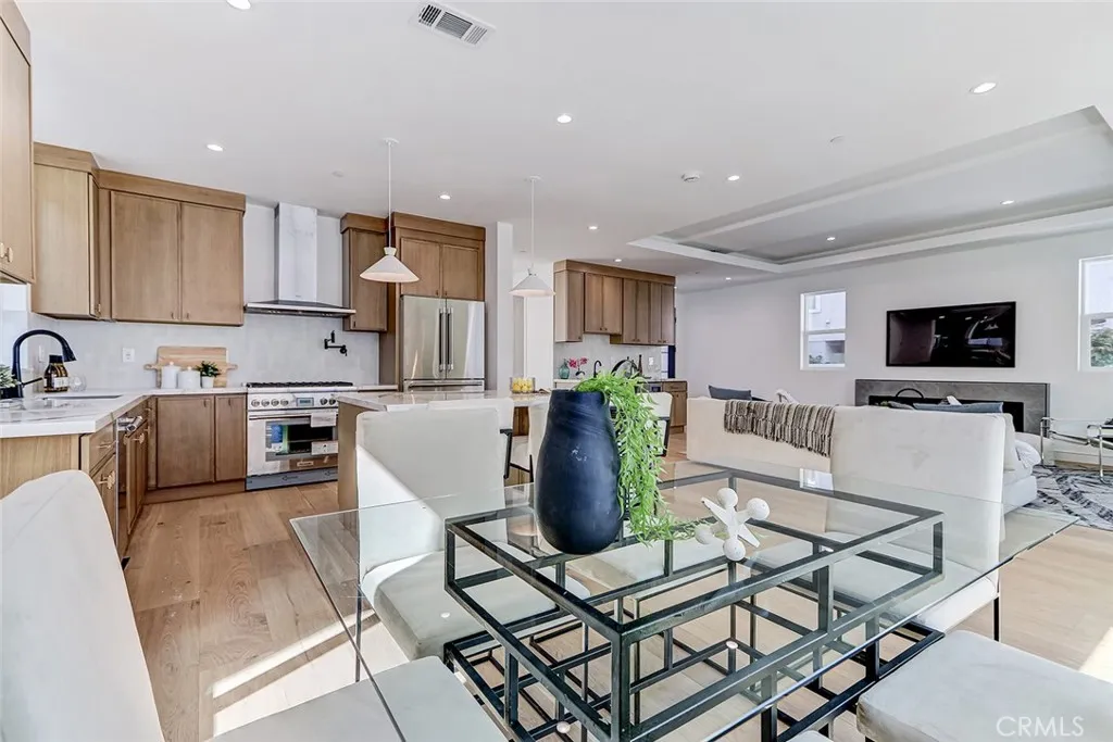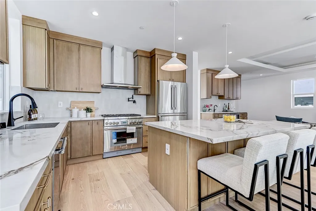 New Construction. Detached townhome on the west side of North Redondo, within the Jefferson Elementary School district. This 4-bedroom, 4.5-bathroom residence offers 2,614 square feet with no shared walls and a private backyard for each unit. The main level features 10-foot ceilings, wide plank engineered wood flooring, and a bright, open layout. The kitchen is centered around a large island and equipped with Thermador appliances, including a 6-burner range, hood vent, and included refrigerator, along with custom slim shaker cabinetry in an oak finish. The living room includes a fireplace and a wet bar with beverage cooler. Upstairs, the primary suite offers a huge walk-in closet with built-ins, and a bathroom with dual vanities, soaking tub, walk-in shower, and separate water closet. Additional features include solar panels, Ring security system, central AC, Google Nest Thermostat, and a two-car garage with EV charging outlet, epoxy floors, and built-in storage. Well-positioned in North Redondo with convenient access to local schools, Hermosa Beach, the Redondo Beach dog park, and the ultimate quality of life that continues to draw people to the South Bay.