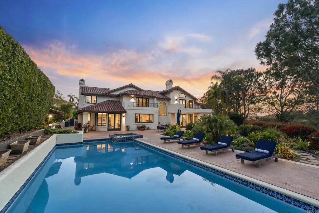 Tucked within a gated, exclusive enclave of just 26 homes, this exceptional residence is ideally positioned on a quiet cul-de-sac and set on a rare, expansive half-acre lot, offering an elevated blend of comfort, privacy, and refined living. This bright and airy home features 4 bedrooms plus an office (or optional flex space/additional bedroom), thoughtfully designed for both everyday living and sophisticated entertaining. Expansive windows showcase tranquil views and invite abundant natural sunlight throughout. Enveloped by lush, mature landscaping, the property lives like a private estate, with the generous grounds creating a true sense of space, seclusion, and usable outdoor living. The resort-style backyard is designed for effortless Southern California living, complete with a sparkling pool and spa, multiple seating and dining areas, and verdant greenery. Additional highlights include a solar system, nearly new roof, and a 3-car garage with extensive storage, including an approximately 10' x 10' stand-up storage area (pull-down ladder access). Located within the highly sought-after Solana Beach School District and just minutes from the beach, shopping, dining, and freeway access, this home offers a coveted balance of convenience and a serene, tucked-away setting. A rare opportunity to own a half-acre property in one of the area’s most desirable coastal communities.