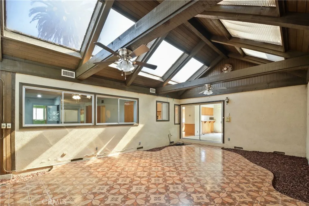 Welcome to this 4-bedroom home full of opportunity, ready for your vision and personal touch. Offered as-is, it presents a rare chance to create something truly special in a highly sought-after Rancho Palos Verdes location. Inside, the layout is both functional and flexible. A cozy den with a fireplace sits to the left and opens to a central enclosed patio with beautiful beamed ceilings, filling the home with natural light and seamlessly connecting the main living areas to the bedrooms. The kitchen features a refrigerator, dishwasher, double oven, gas cooktop, and range hood, complemented by a breakfast bar and cozy breakfast nook, along with an open living and dining area, ideal for both everyday living and entertaining. All four bedrooms are conveniently located on the main level, including a primary suite with its own ¾ bathroom. A full bath and additional half bath provide comfort and convenience for the rest of the home. The home also features forced air heating and central air conditioning for year-round comfort. Upstairs, an expansive bonus room with a kitchenette or wet bar offers endless possibilities, perfect for a second living space, home office, or creative studio. The backyard is designed for relaxation and entertaining, featuring a covered pergola with a ceiling fan and a storage shed. An attached two-car garage with laundry hookups adds to the home’s functionality. Whether you're looking to renovate, reimagine, or invest, this property offers incredible potential in a prime location. Bring your ideas and make it your own.