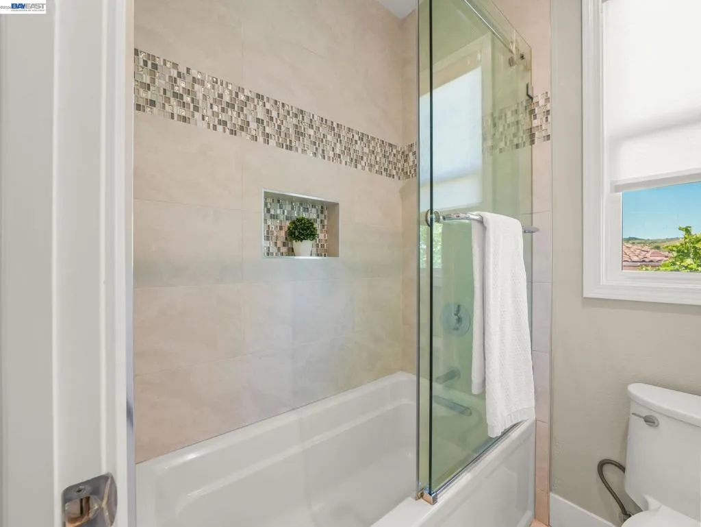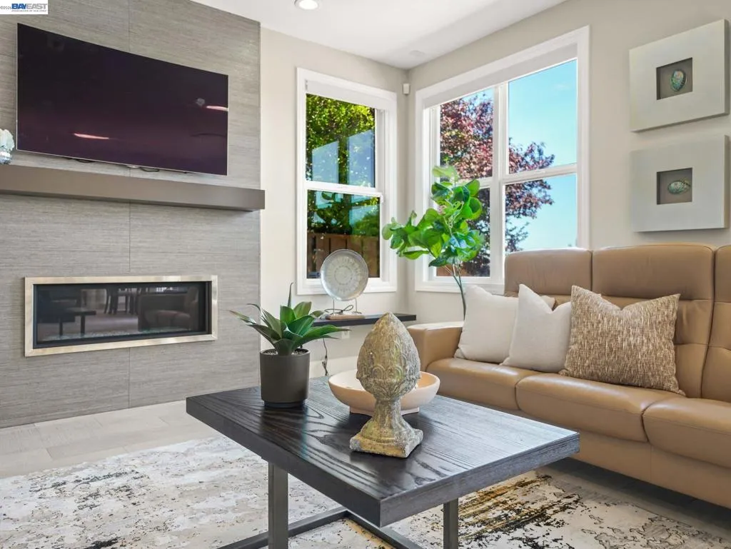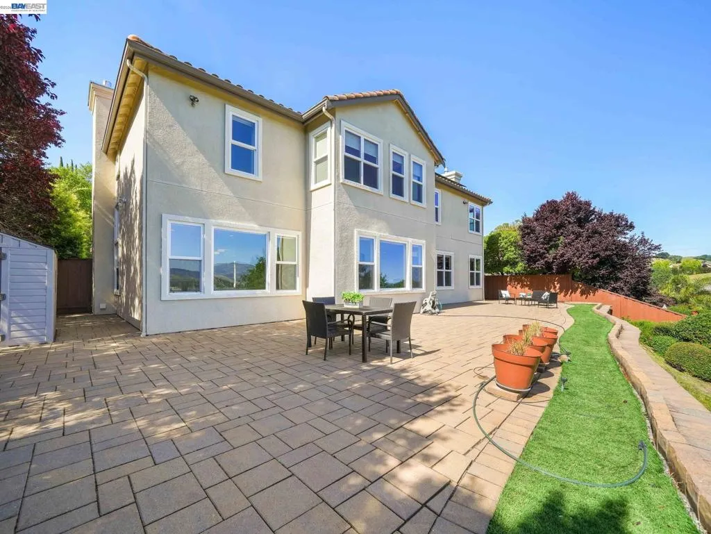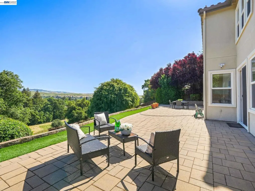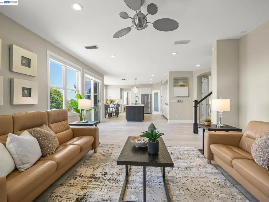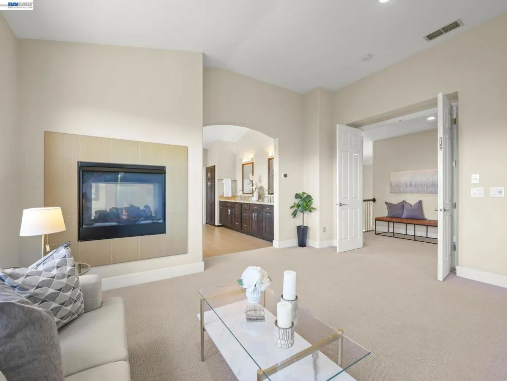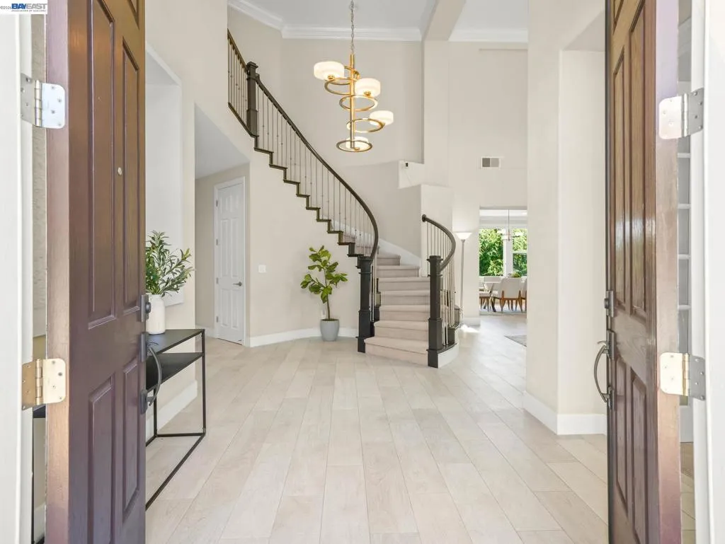 Fully upgraded and impeccably designed, this exceptional Westside San Ramon residence offers 5 bedrooms, 4 baths, plus a private office—blending refined luxury with everyday livability. A dramatic double-height entry with sweeping front staircase and secondary rear staircase creates a grand first impression, while expansive windows frame scenic views and fill the home with natural light. At the heart of the home, the chef’s kitchen is thoughtfully curated with premium Bosch appliances, a Fisher & Paykel gas cooktop, quartz countertops, an oversized island, striking two-toned cabinetry, full tile backsplash, and a generous walk-in pantry—perfect for both daily living and elevated entertaining. Elegant living spaces are enhanced by electric fireplaces, crown molding, architectural detailing, and radiant heated tile flooring in select areas. The expansive primary suite offers a true retreat with Mt. Diablo views, a two-sided fireplace, private sitting area, and a custom-designed walk-in closet. The spa-inspired bath features dual showerheads and refined finishes for a resort-like experience. Spacious secondary bedrooms include built-ins and ceiling fans for comfort and functionality. Enjoy a rare sense of privacy with no front or rear neighbors, complemented by beautifully designed outdoor spaces with brick paver hardscape. Additional highlights include a 3-car side-by-side garage with epoxy flooring, ample storage, leased solar, and EV charging—delivering a seamless blend of luxury, efficiency, and modern living.