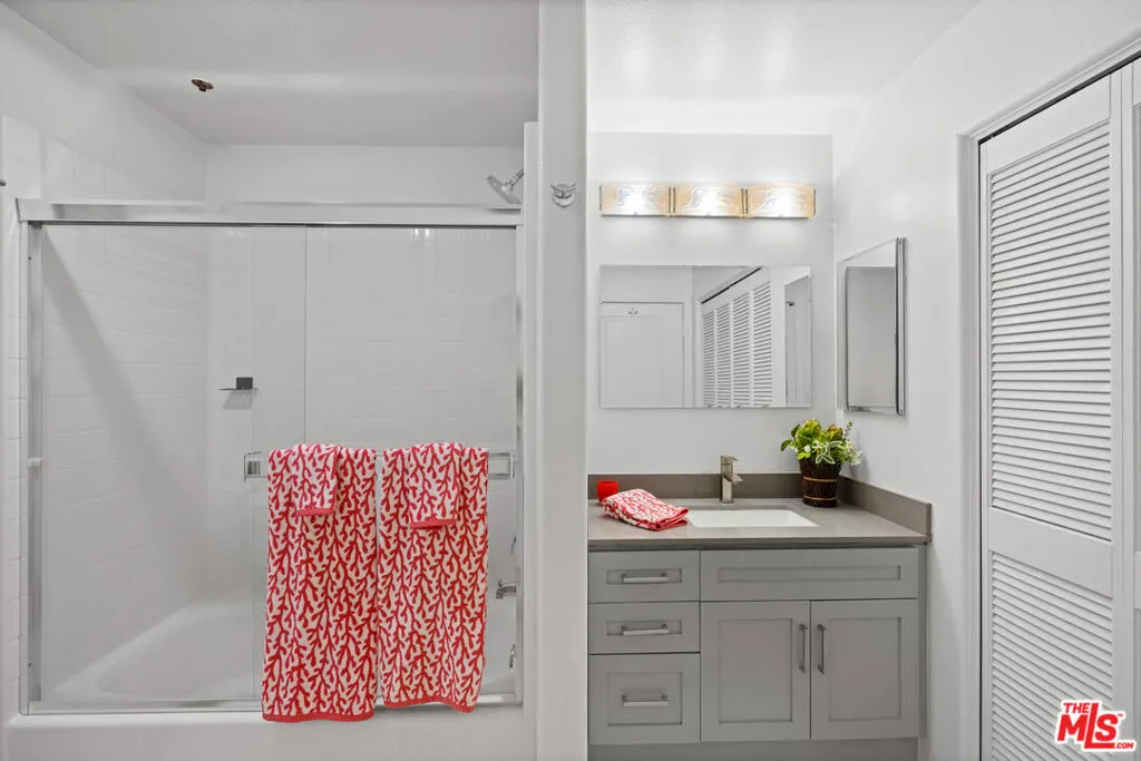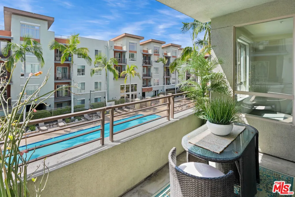 Warm wood floors and abundant natural light set the tone in this bright end-unit 1-bedroom. An extra window and a sliding glass door bring in light from multiple exposures, creating an open, airy feel throughout the living space. Step out to a covered balcony overlooking the palm-lined pool and spa courtyard, where soft breezes and greenery offer a peaceful backdrop. An updated kitchen features new cabinetry, including corner revolving shelves for efficient storage, a double-door refrigerator, and a bold black-and-white patterned tile backsplash that brings a graphic, modern touch. A double-basin stainless steel sink with a high-arc pull-down faucet is paired with a gray quartz countertop, which is lowered to create a more functional breakfast bar and prep space. A built-in beverage bar adds a nice custom detail. The oversized bedroom offers flexibility for a comfortable retreat and includes a walk-in closet. In-unit brand new washer and dryer with storage cabinets are conveniently located in the spacious bathroom. Enjoy Savoy's resort-style amenities, including a pool, spa, fitness center, rooftop deck, landscaped courtyards, and a 24-hour attended lobby. Located in the heart of Little Tokyo near the Arts District, it offers easy access to dining, cafes, and neighborhood favorites. Lease includes some utilities and 1 assigned parking space. Storage unit available for an additional monthly fee.