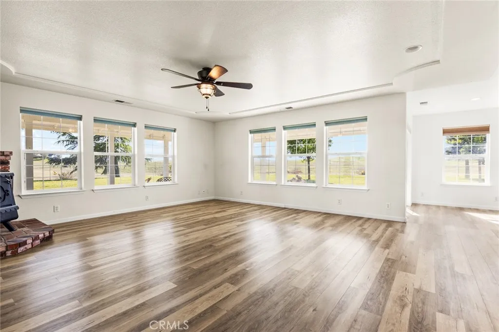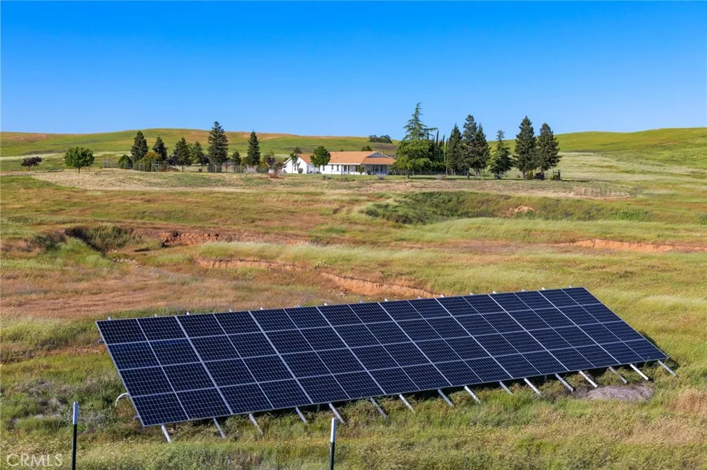 Experience the best of country living on this exceptional gated estate set on over 30 acres in the scenic countryside of Corning, located in the desirable Thomas Creek Estates. Backing to a sprawling 2,220-acre cattle ranch, this property offers a rare combination of privacy, space, and neighborhood connection, with 360° views and sunsets that feel almost unreal. This light, bright, and airy 4-bedroom home showcases modern farmhouse vibes with thoughtful upgrades throughout. Inside, you’ll find fresh interior paint, LVP flooring throughout, and abundant windows that flood the home with natural light while framing the surrounding rolling hills. The beautifully updated kitchen is designed to impress, featuring quartz countertops, crisp white cabinetry, an electric range, a beverage/wine cooler, and a generous center island with butcher block surfaces and breakfast bar seating—perfect for casual dining and entertaining. The spacious family room offers a cozy setting for relaxing evenings, while a separate living area provides additional space for hosting, gatherings, or game nights. The updated primary bathroom adds a touch of modern comfort with dual sinks, stylish finishes, and a beautifully designed walk-in shower. Additional bedrooms offer flexibility for guests, office space, or hobbies. Step outside to take in the full experience—an expansive wraparound covered porch perfectly positioned to capture panoramic views and breathtaking sunsets from every angle. The acreage offers rolling, usable land ideal for animals, gardening, recreation, or creating your own private retreat. This property is packed with features, including owned 14.3 kW solar, recessed lighting, ceiling fans throughout, updated fixtures, an attached two-car garage, two large carports, and a seasonal pond that enhances the natural beauty of the setting. A rare opportunity to own a property that blends modern comfort, wide-open space, and unforgettable views—this one truly delivers the lifestyle you’ve been searching for.