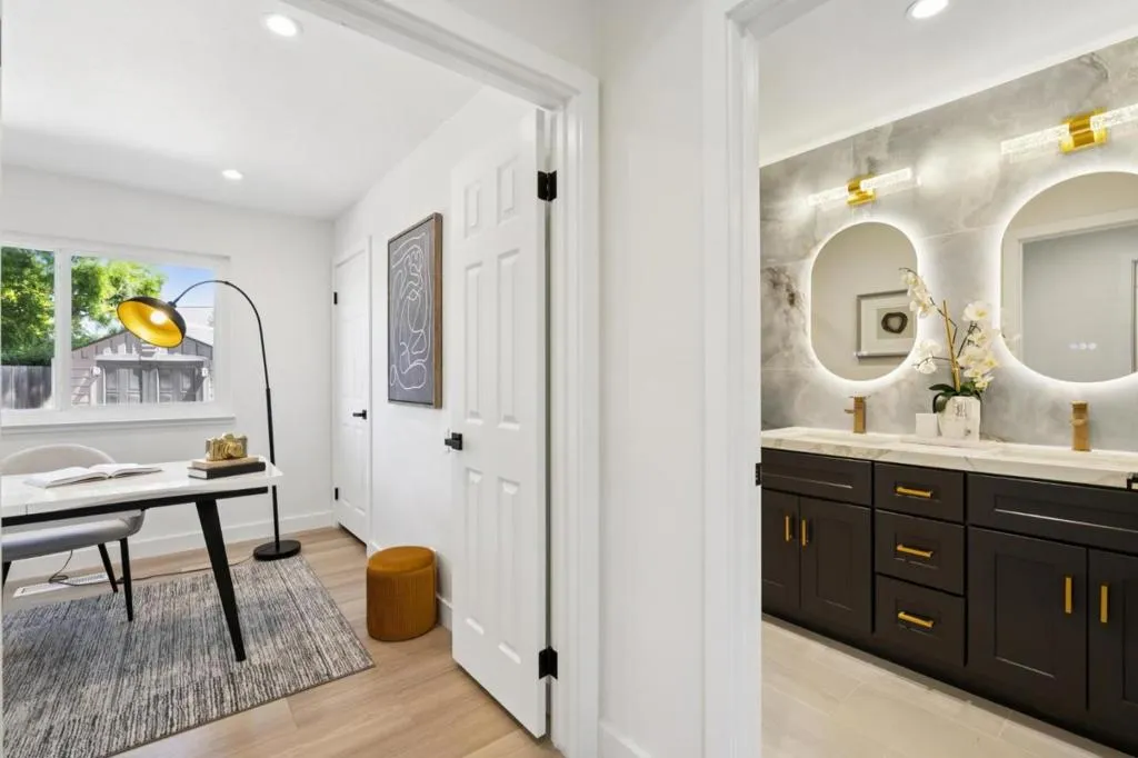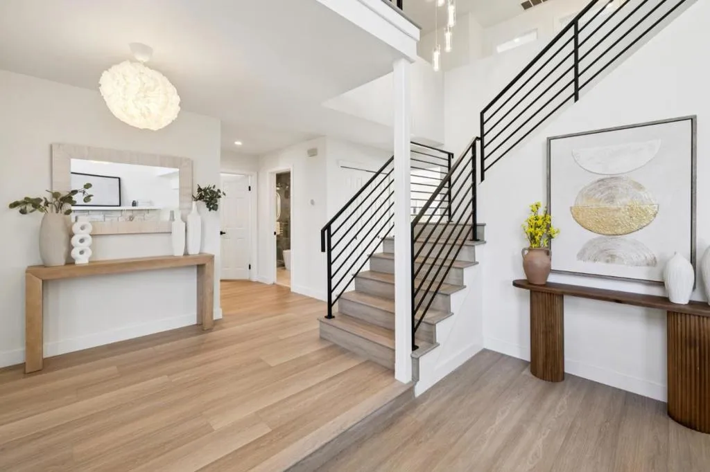 Situated on a huge 10,000+ sq ft lot in a quiet cul-de-sac, this beautifully curated 5-bedroom, 3-bathroom two-story home is surrounded by mature trees and blooming gardens, offering a serene, retreat-like ambiance with a sense of privacy and tranquility. It features a bright, airy interior, soaring ceilings, and well-crafted living spaces designed for both comfort and style. The remodeled chefs kitchen showcases a striking waterfall island, new stainless steel appliances, and seamless flow into the dining and living areas, ideal for modern living and effortless entertaining. Elegantly designed bathrooms reflect a cohesive, refined aesthetic, while new flooring elevates the homes overall appeal. An updated wet bar enhances the homes social lifestyle, perfect for hosting gatherings and creating memorable moments. Upstairs rooms enjoy open, far-reaching views and abundant natural light, adding to the homes inviting charm. The versatile loft offers endless flexibility as a second home office, lounge, kids play space, or yoga room. The spacious backyard provides ample room for entertaining, relaxing, or future ADU potential. This is a rare opportunity to own a refined and inviting home that balances comfort, design, and privacy in a highly desirable neighborhood.