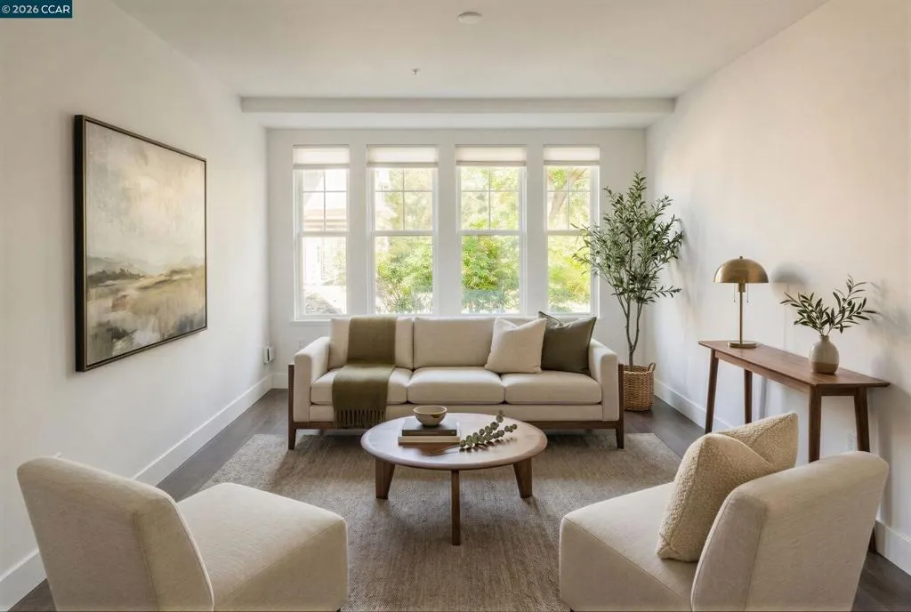 Welcome home to Lafayette. Convenience and luxury at every corner. Walking distance to grocery stores, banks, dining, downtown Lafayette, 680/24 access, and BART. Premium location with garden view and open space. One shared wall within the unit with level-in entry access, as needed. New appliances, high ceilings, freshly painted, beautiful flooring with brand new carpet in the bedrooms. Walk in master closet. 2 underground parking spots and a bicycle storage room. Ideal living in the heart of sought-after downtown Lafayette.
