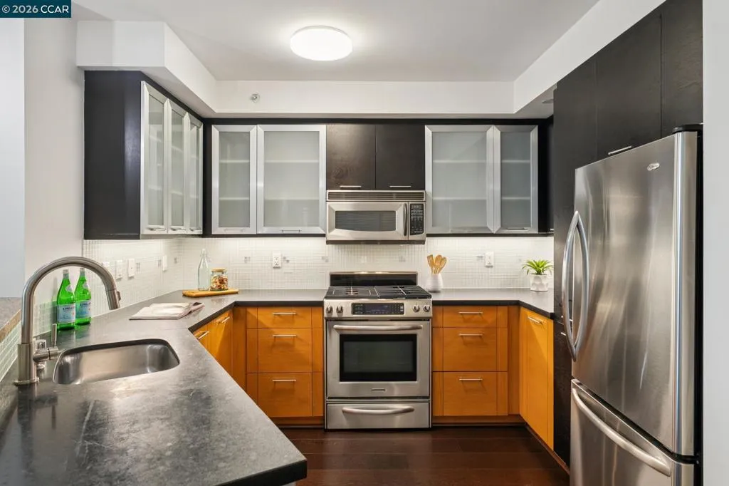 Welcome to 170 King Street, Unit 722—a bright and stylish 2-bedroom, 2-bath residence in one of South Beach’s most desirable full-service communities. Overlooking the resort-style pool and lushly landscaped courtyard with BBQ area, this home offers a peaceful, quiet retreat with expansive windows that fill the space with natural light. Thoughtfully designed for both comfort and functionality, the open-concept living, dining, and kitchen areas create an inviting space for everyday living and effortless entertaining. The chef’s kitchen features stainless steel appliances, a gas range, granite countertops, custom cabinetry with frosted glass uppers, and a convenient breakfast bar. Fresh paint, beautifully refreshed wood floors, and updated light fixtures add a modern, move-in ready feel throughout. The well-appointed layout includes a spacious primary suite with custom built-ins, an ensuite bath, and generous closet space, along with a second bedroom ideal for guests, a home office, or both. Additional highlights include in-unit laundry, one-car deeded garage parking, and a private storage locker. Residents enjoy access to an exceptional suite of amenities, including a heated pool and spa, fitness center, clubhouse, theater room, landscaped courtyard, BBQ areas, and a stunning rooftop deck with city and Bay Bridge views. Ideally located just steps from Oracle Park and minutes to Chase Center, Caltrain, Muni, BART, the Embarcadero, and some of San Francisco’s best dining and cafes, this home offers the perfect blend of comfort, convenience, and vibrant city living.