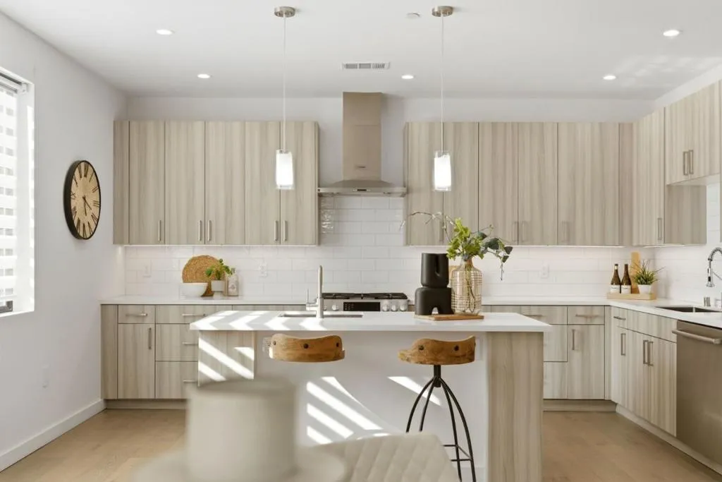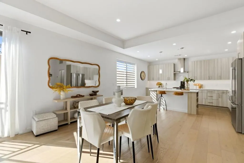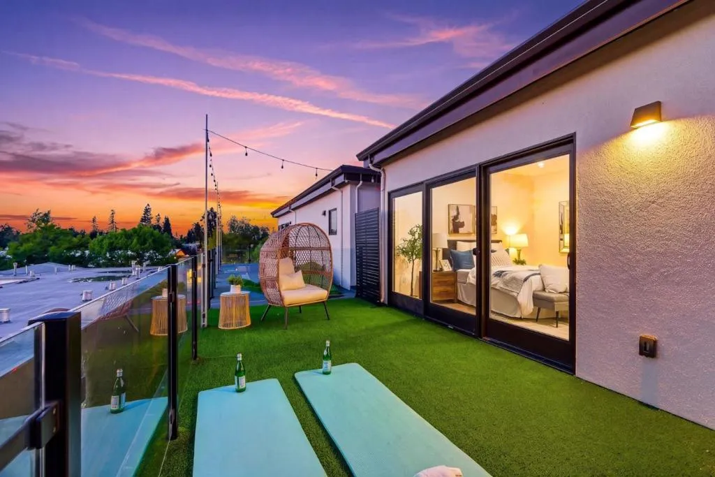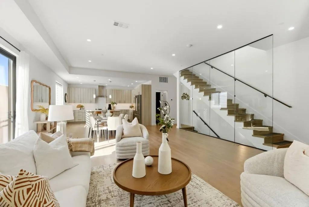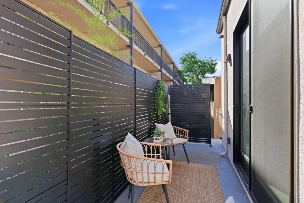 Thoughtfully designed for modern comfort and flexibility, 914 Woodside Rd is a striking 2-bedroom, 3-bath residence offering 1,433 sq. ft. of refined living space. The unique layout features two primary suitesone conveniently located on the ground floor and a second private retreat on the top levelideal for guests, multi-generational living, or work-from-home flexibility. Interior finishes include wide-plank European white oak hardwood floors, smooth Level 5 wall finishes, sleek glass interior railings, and soaring 910 ft ceilings. Oversized high-performance windows fill the home with natural light, while enhanced insulation between walls and floors creates a quiet, comfortable environment. The designer kitchen features Bosch appliances with gas range, quartz countertops with full-height premium backsplash, custom soft-close cabinetry with dovetail drawers, and under cabinet lighting. Spa-inspired bathrooms offer frameless glass showers, Hansgrohe fixtures, and quartz surfaces. Enjoy seamless indooroutdoor living with a 119 sq. ft. balcony off the main living area and an expansive 507 sq. ft. private balcony off the upper-level primary suite. Additional highlights include a 2-car attached garage pre-wired for EV charging, secured entry gate, and fully fenced perimeter.