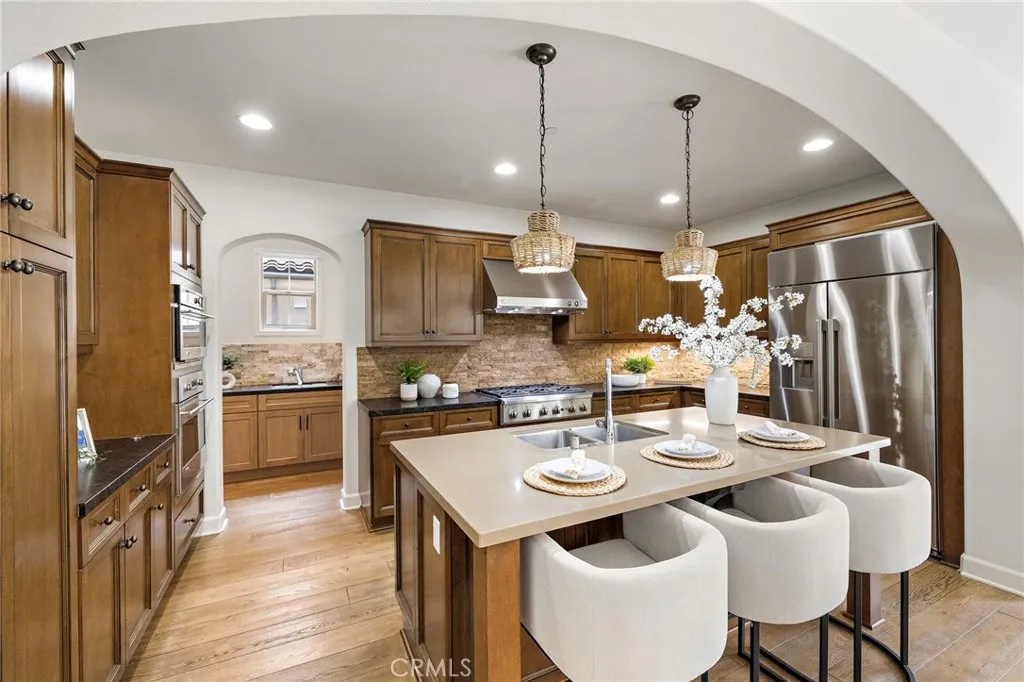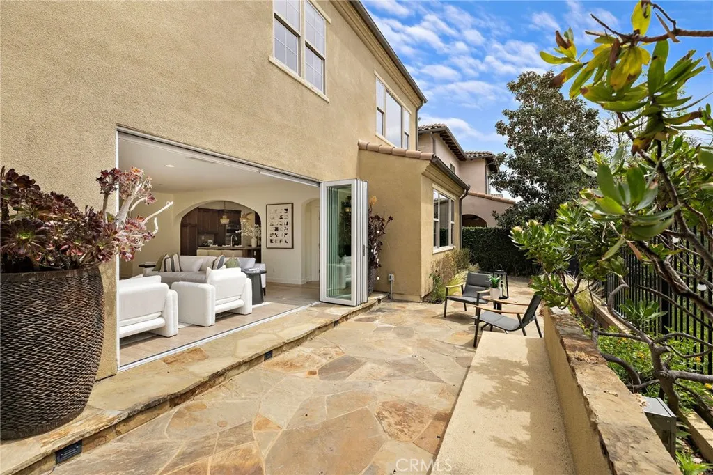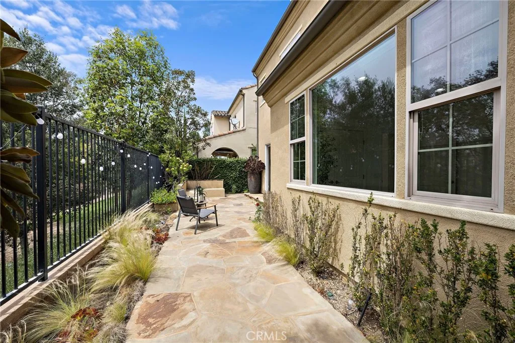 Welcome to 122 Catalonia, a beautifully upgraded 4-bedroom residence with a versatile loft, perfectly positioned in Irvine's sought-after Portola Springs community. Step through the front door into a dramatic two-story foyer featuring a stunning wrought-iron spiral staircase that sets the tone for the entire home. The fully open-concept main level flows seamlessly without walls or partitions, anchored by a full wall of sliding glass doors that dissolve the boundary between indoor and outdoor living. The private south-facing backyard backs directly to the community's lush greenbelt and walking trail — elevated with no rear neighbors, offering exceptional privacy and all-day natural light. Inside, the bright south-facing primary suite enjoys the same premium sun exposure. Recent upgrades include brand-new wood flooring and a new built-in refrigerator. Just steps from the community park and tennis courts, this home also benefits from Portola Springs' notably lower tax rate and HOA structure (buyer to verify). A rare combination of privacy, light, and lifestyle — move-in ready and thoughtfully refreshed.