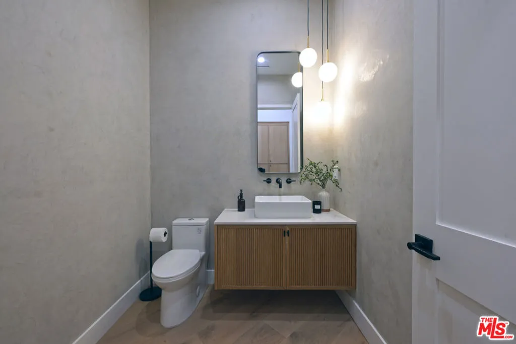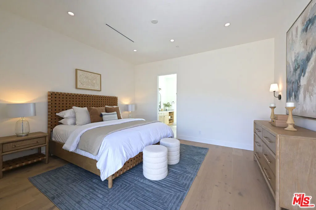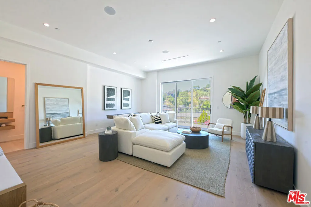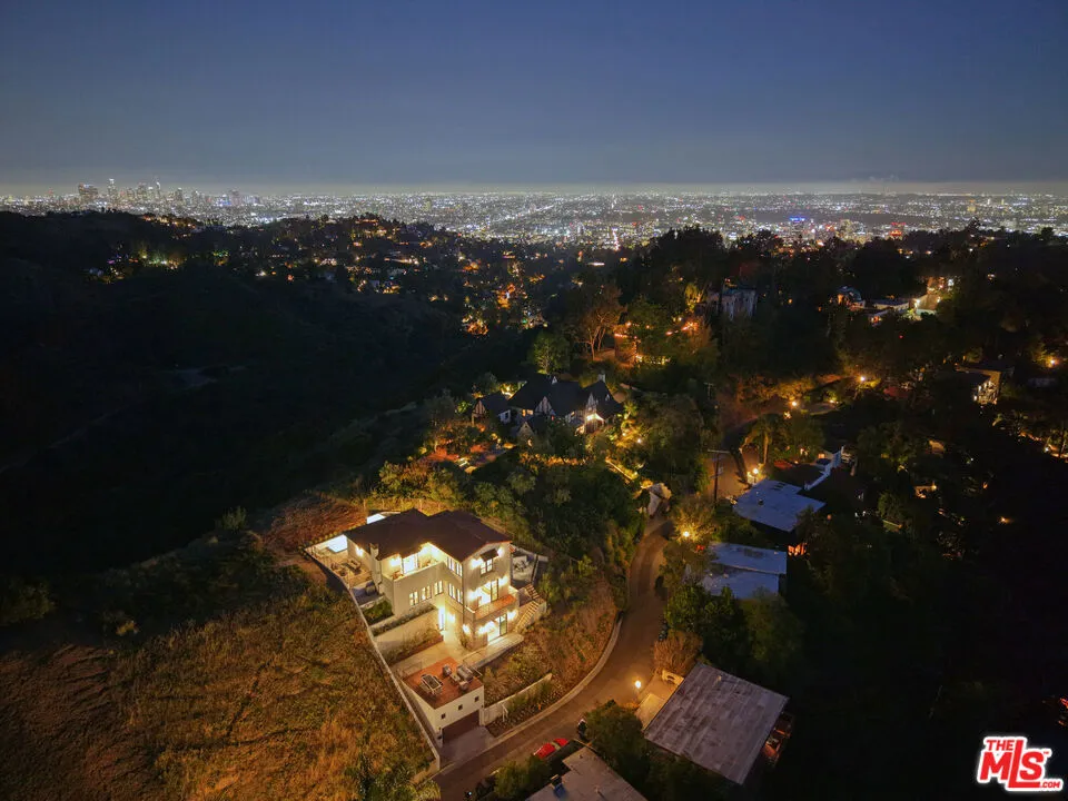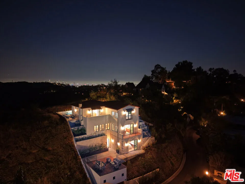 Sited on a promontory with commanding views of the Hollywood sign, Beachwood Canyon and the city below, this just completed extraordinary new construction presents as a classic Hollywoodland villa, blending seamlessly into this historic neighborhood, but reveals astonishing open, expansive interiors with a warm, organic modernism, executed with exquisite taste and style that simply cannot be matched in any other Beachwood property. Flooded with natural light and with views from every room, the home offers contemporary elegance and luxurious details throughout. The oversized chef's kitchen with top-of-the-line appliances and huge island opens to a voluminous living room and dining room, built for grand entertaining and intimate gatherings alike. The spacious entry level family room offers a multitude of options. The luxurious primary suite enjoys canyon views on one side and swimming pool and city towers on the other. With four bedrooms and five and a half bathrooms, multiple patios and terraces, a sparkling new pool and endless views, this iconic offering can never again be replicated. Elevated from the street and with Griffith Park behind, this unique trophy property affords the ultimate in seclusion and privacy. Superbly located near to Beachwood Cafe & Market, Griffith Park and Franklin Village, with commuter friendly access to major hubs of commerce and entertainment.
