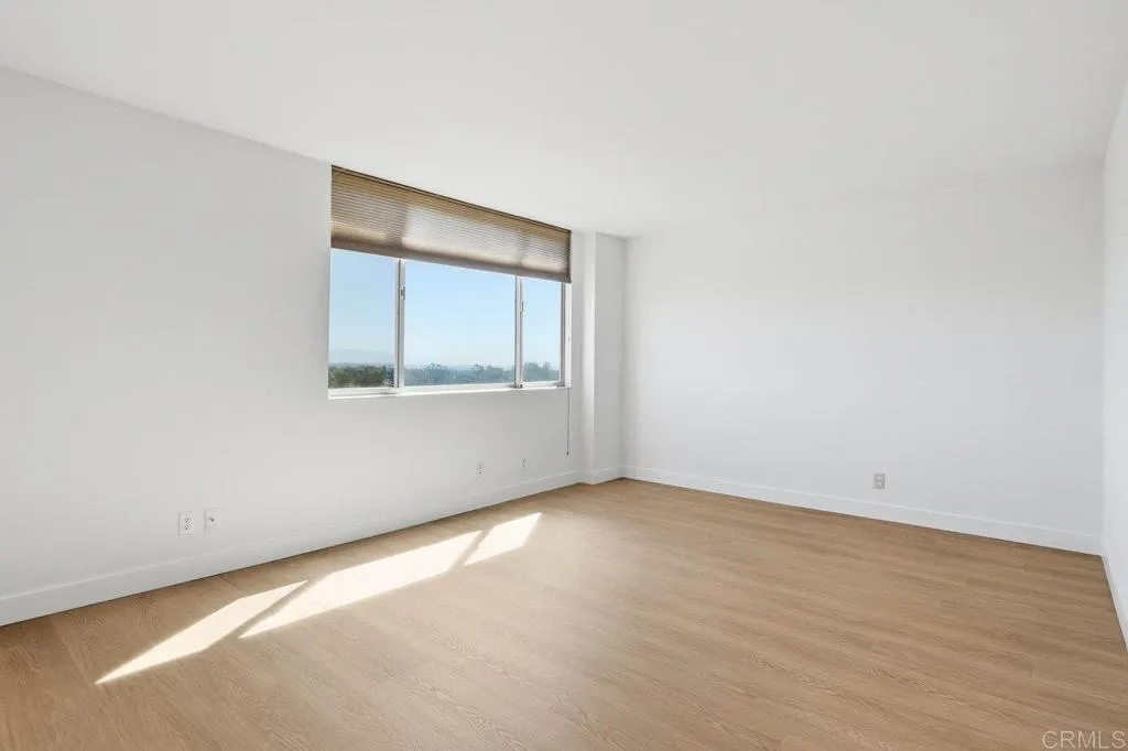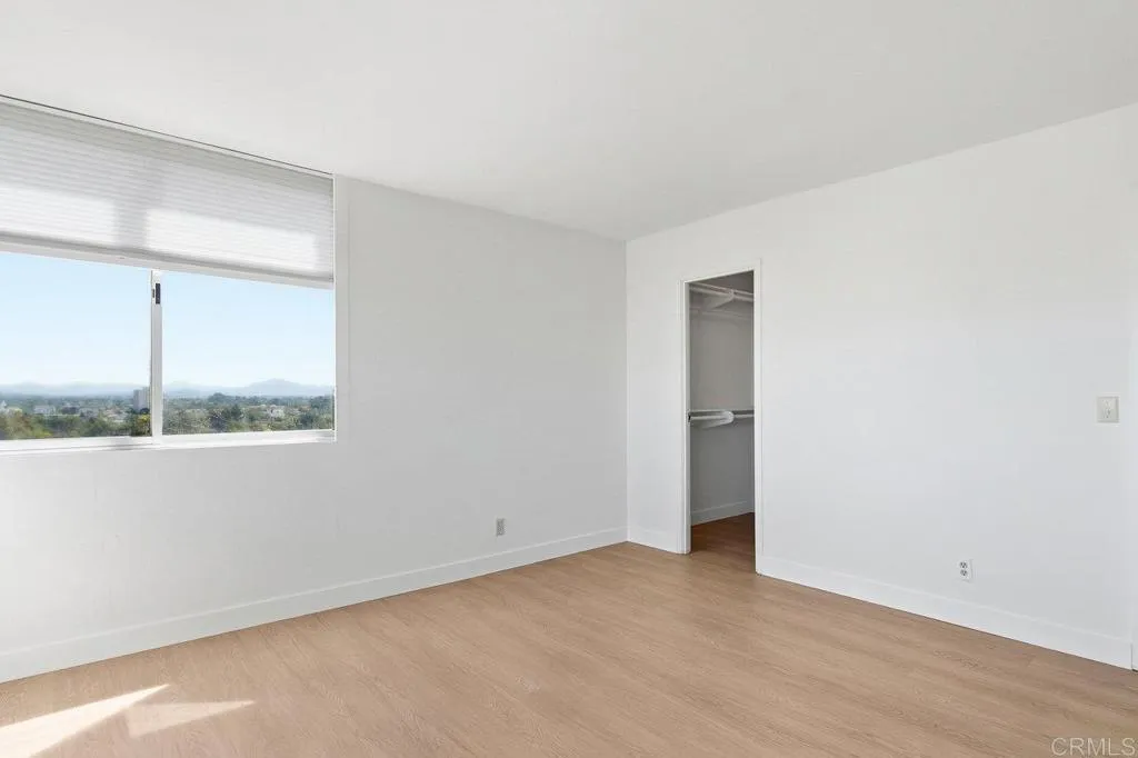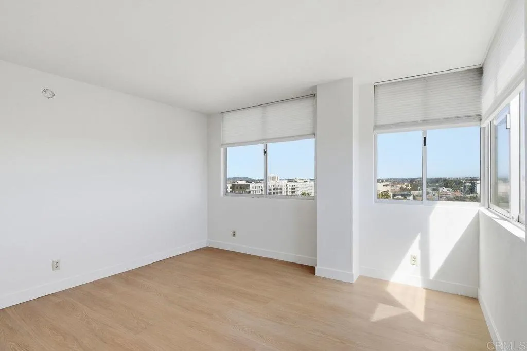 Welcome to this bright and spacious condo in the desirable Coral Tree complex, just minutes from Balboa Park and Hillcrest. Located on the 13th floor, this light-filled home showcases sweeping northeast-facing views of the mountains and city skyline. The open-concept living and dining area is accented by polished hardwood floors that bring warmth and character throughout. A retro-inspired kitchen with a breakfast bar. Both generously sized bedrooms with NEW flooring offer stunning views, with the primary suite featuring a walk-in closet and en-suite bath. Additional conveniences include in-unit laundry, full size storage room, and two side by side parking spaces located near the elevator. Coral Tree residents enjoy resort-style amenities including a pool, spa, tennis courts, and a clubhouse with a full kitchen, fireplace, and pool tables—perfect for entertaining or relaxing close to home. This home is ready for someone to make it their own!